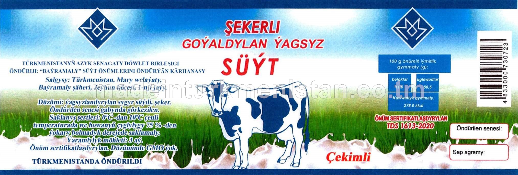 Şekerli goýaldylan ýagsyz süýt