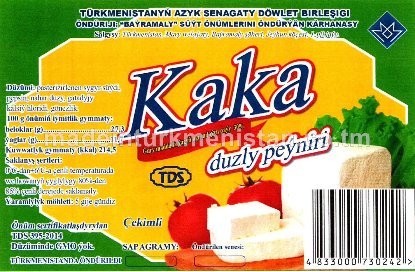 "Kaka" duzly peýniri. Ýaglylygy 30%