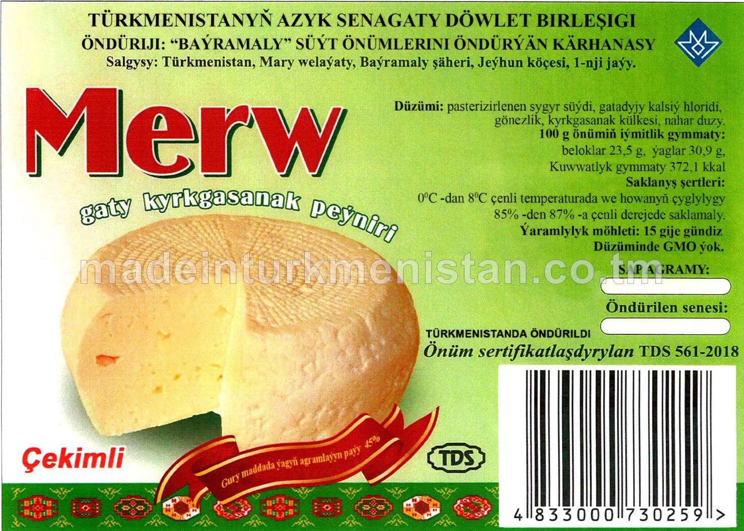 "Merw" gaty kyrkgasanak peýniri. Ýaglygy 45%