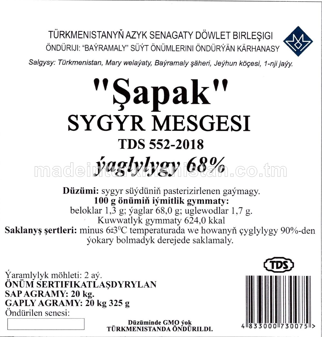 "Altyn Asyr" mesge ýagy, ýaglylygy 72,5%