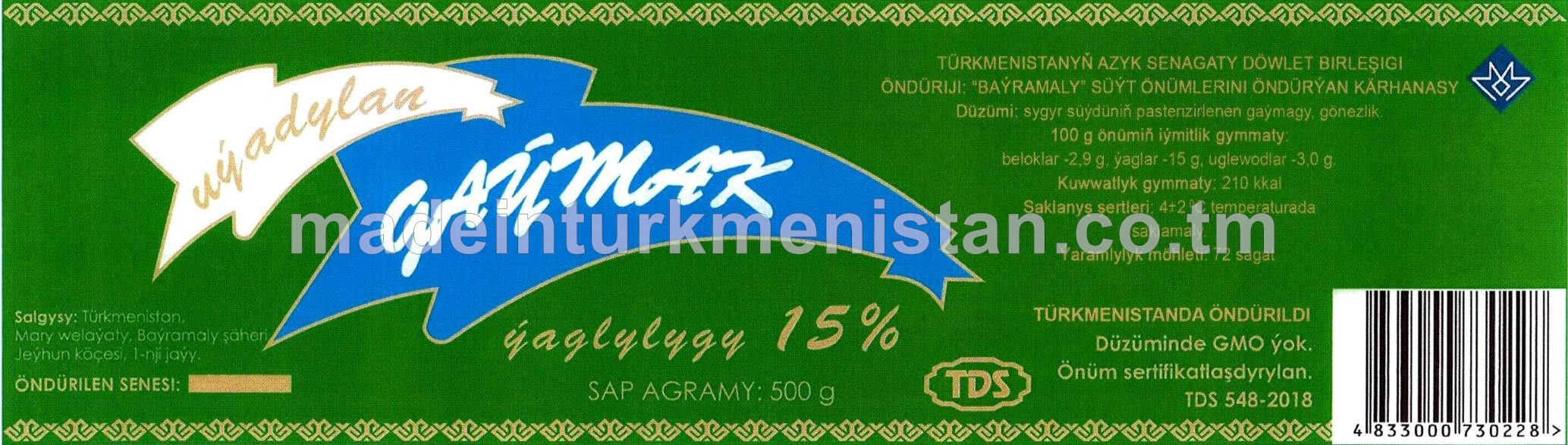 Uýadylan gaýmak. Ýaglylygy 15%