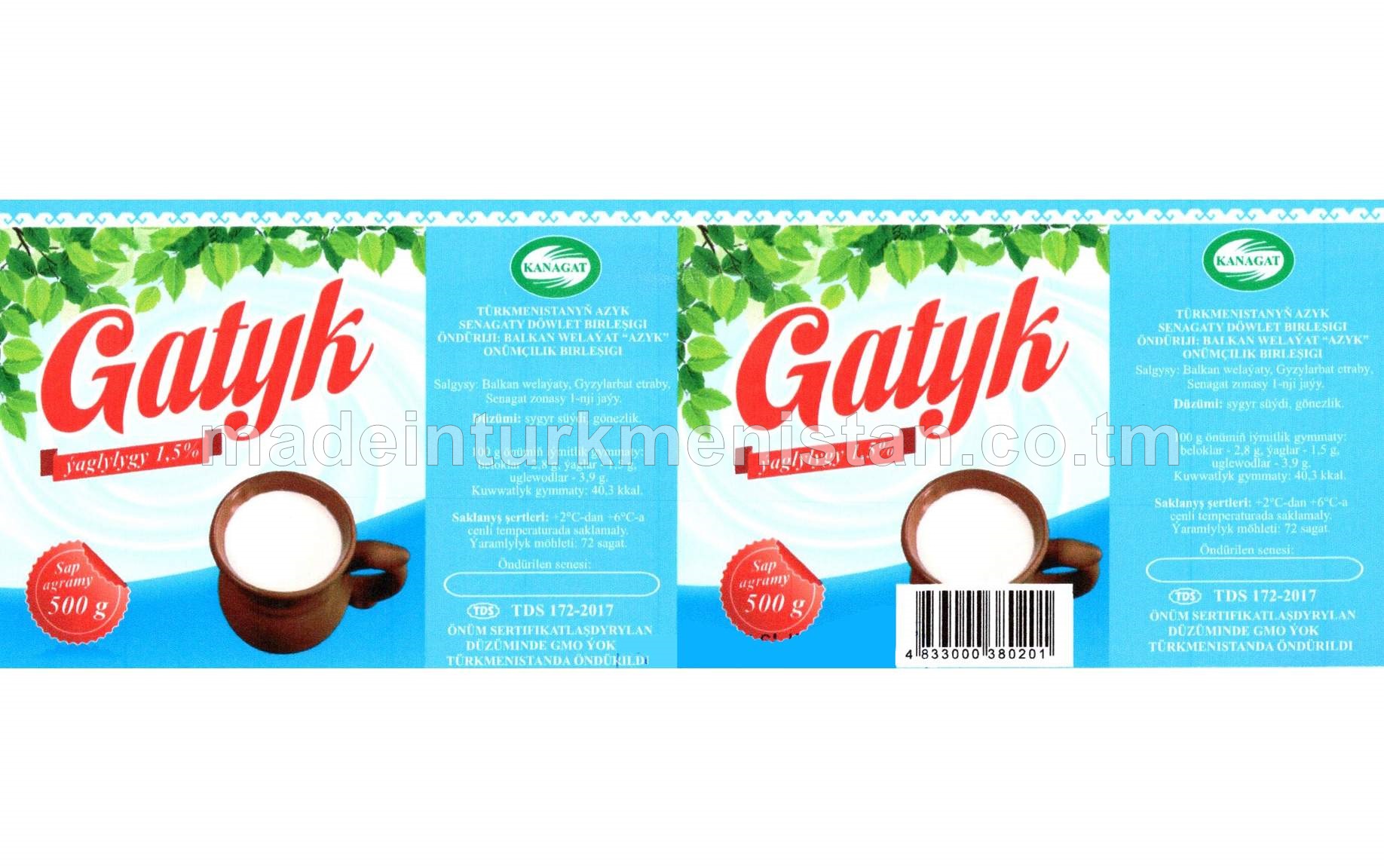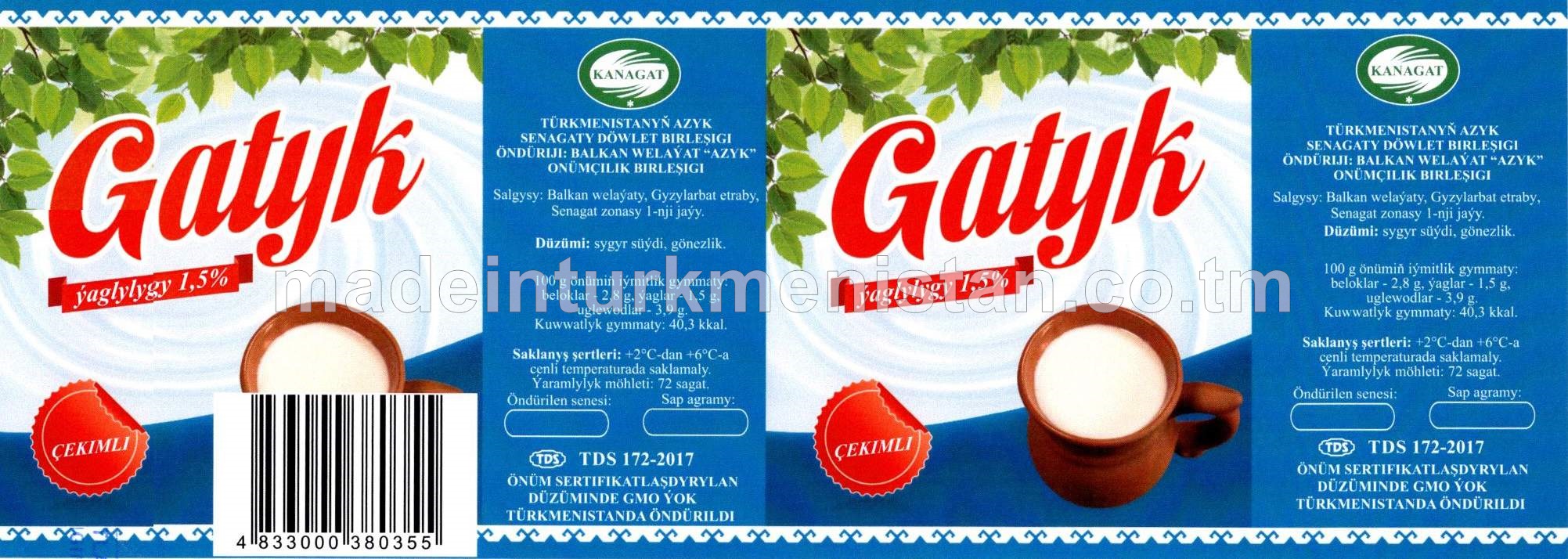 Pasterizirlenen sygyr süýdi. Ýaglylygy 1,5%