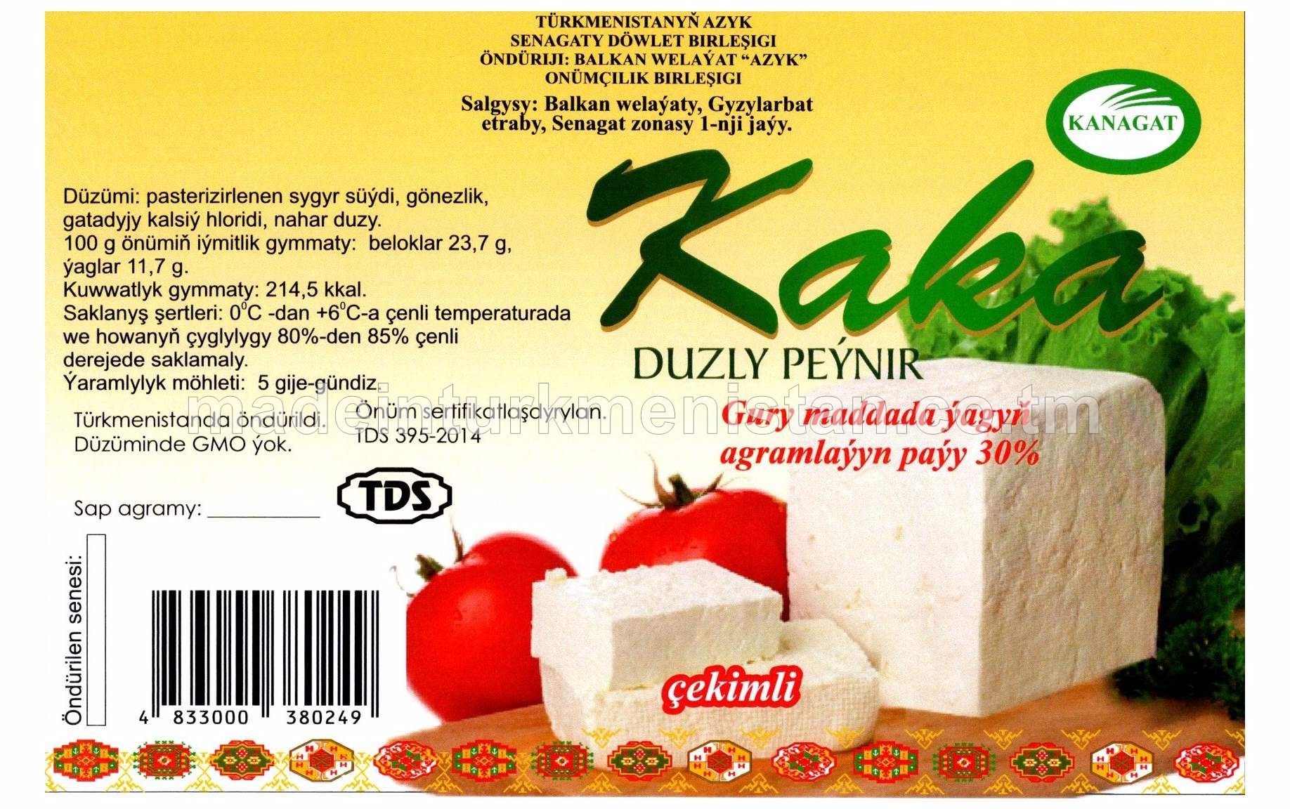 "Kaka" duzly peýnir. Ýaglylygy 30% (çekimli)