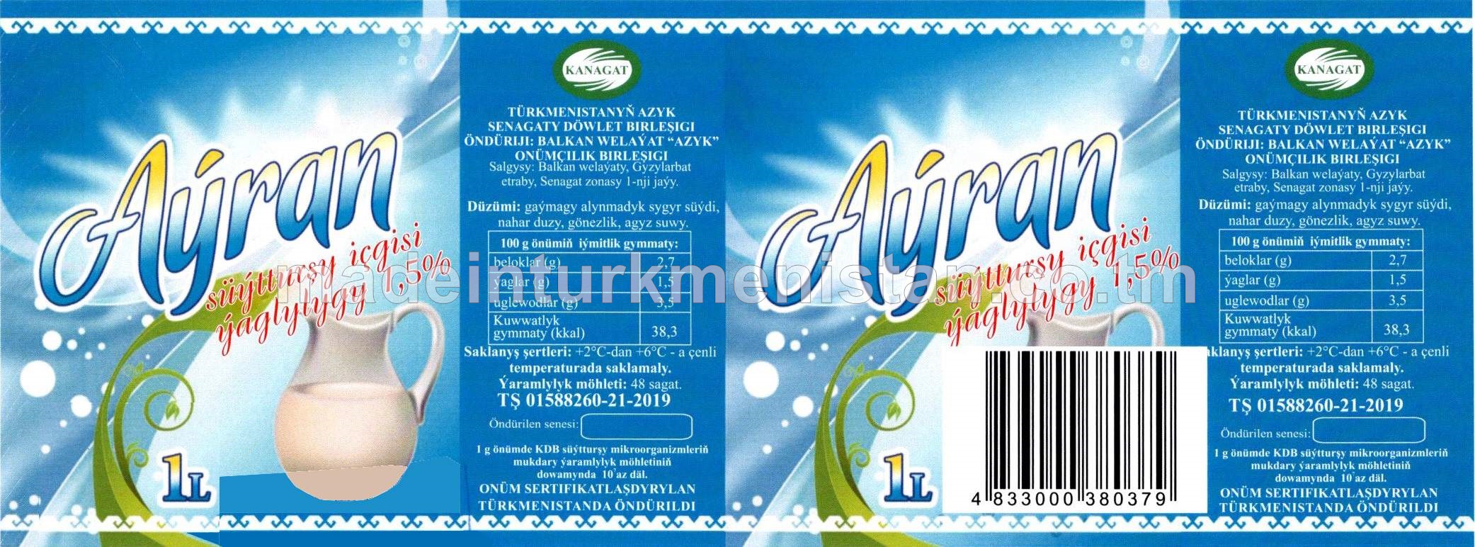 Aýran. Süýtturşy içgisi ýaglylygy 1.5%