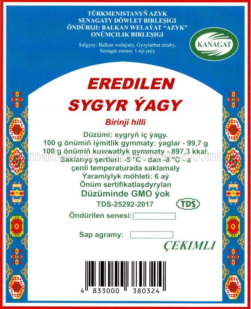Eredilen sygyr ýagy. Birinji hilli (çekimli)