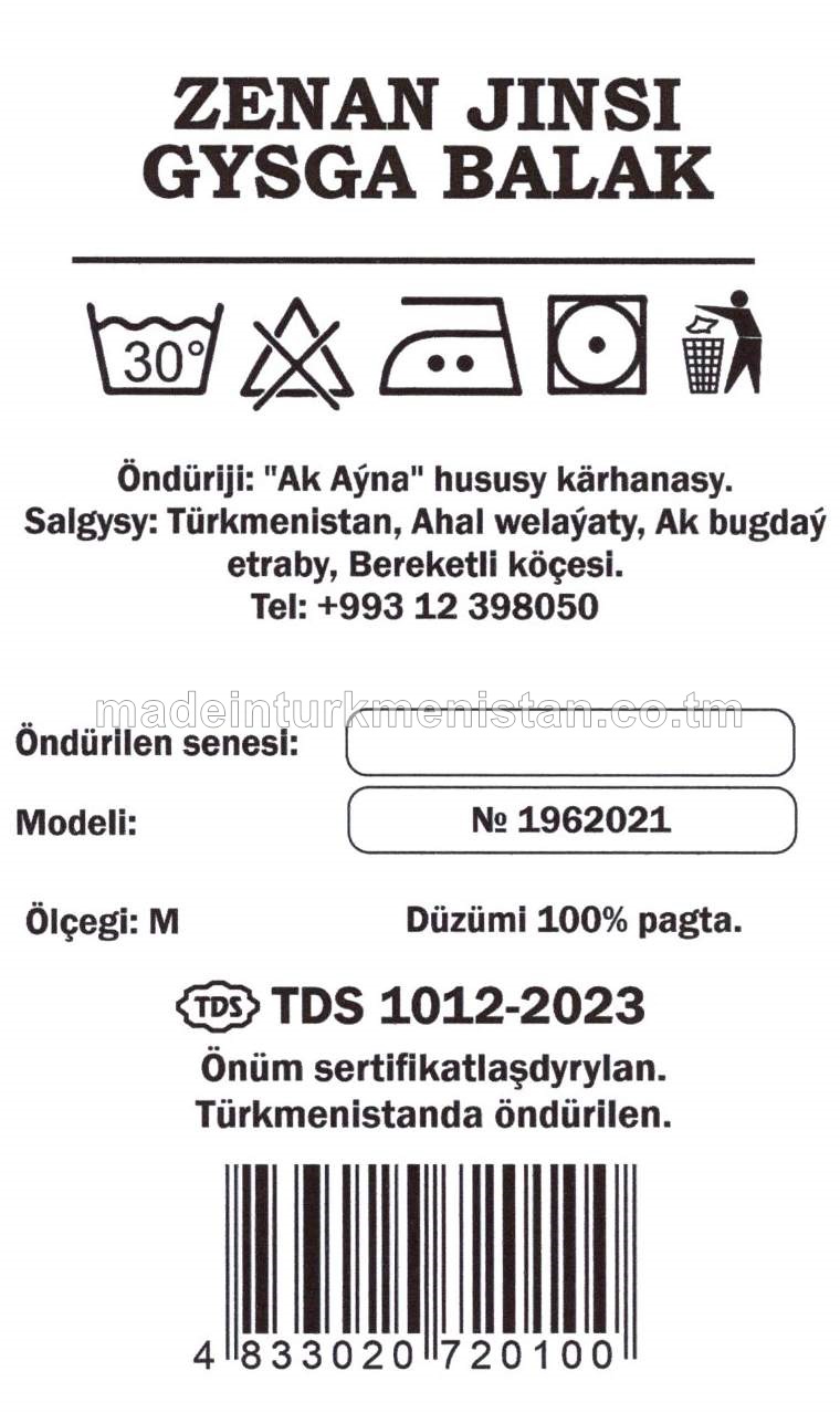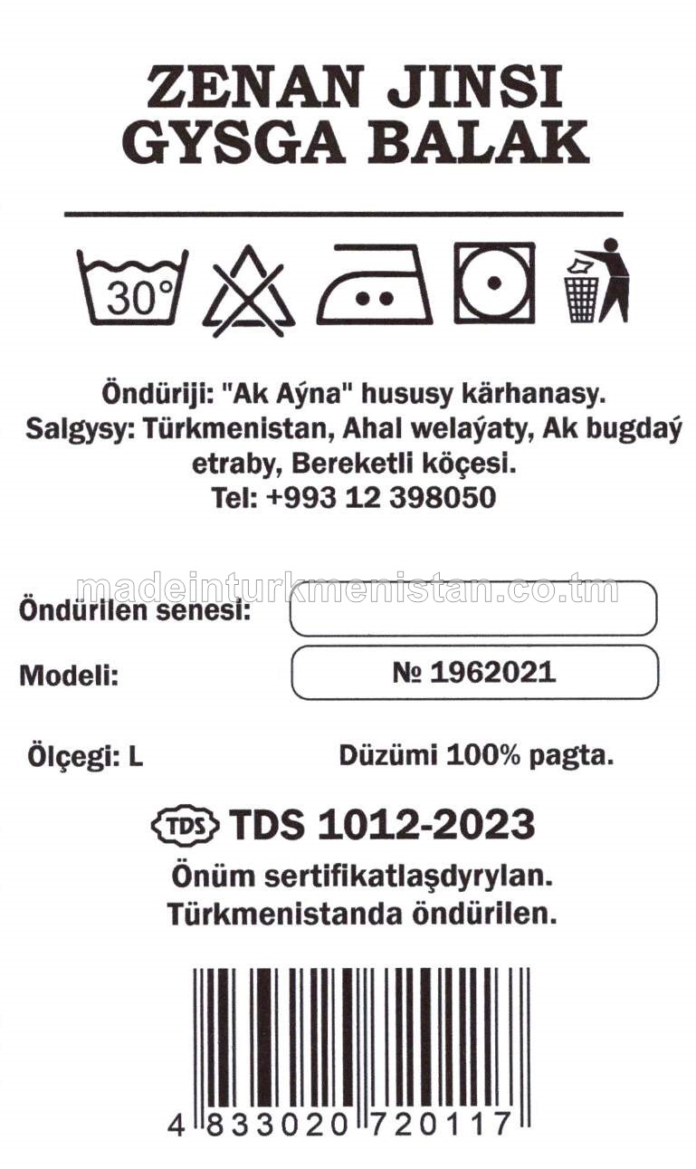 Zenan jinsi gysga balak. Ölçegi-XL. Modeli №1962021