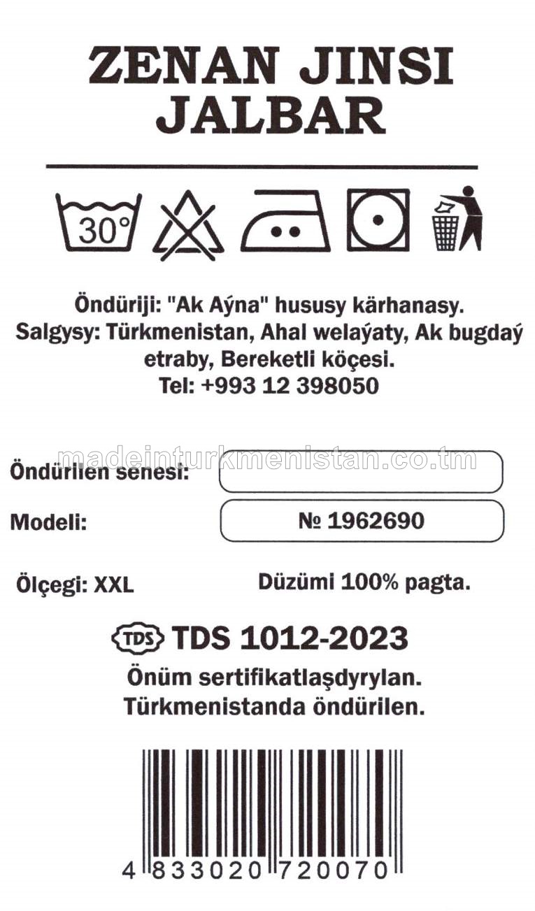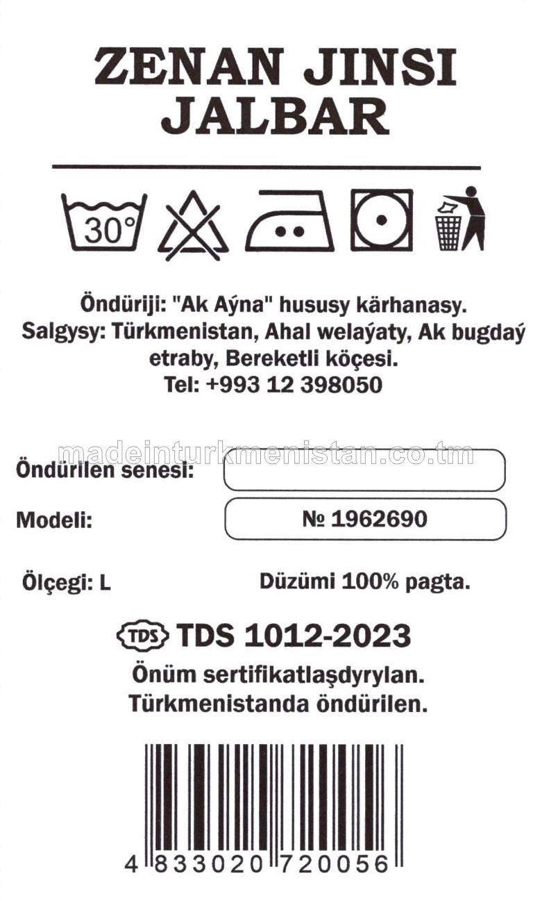 Zenan jinsi jalbar. Ölçegi-L. Modeli №1962690