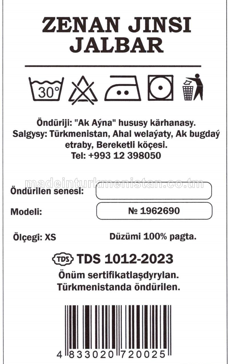 Zenan jinsi jalbar. Ölçegi-XXS. Modeli №1962690