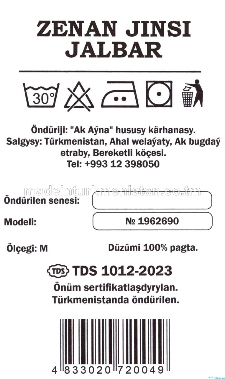 Zenan jinsi jalbar. Ölçegi-M. Modeli №1962690