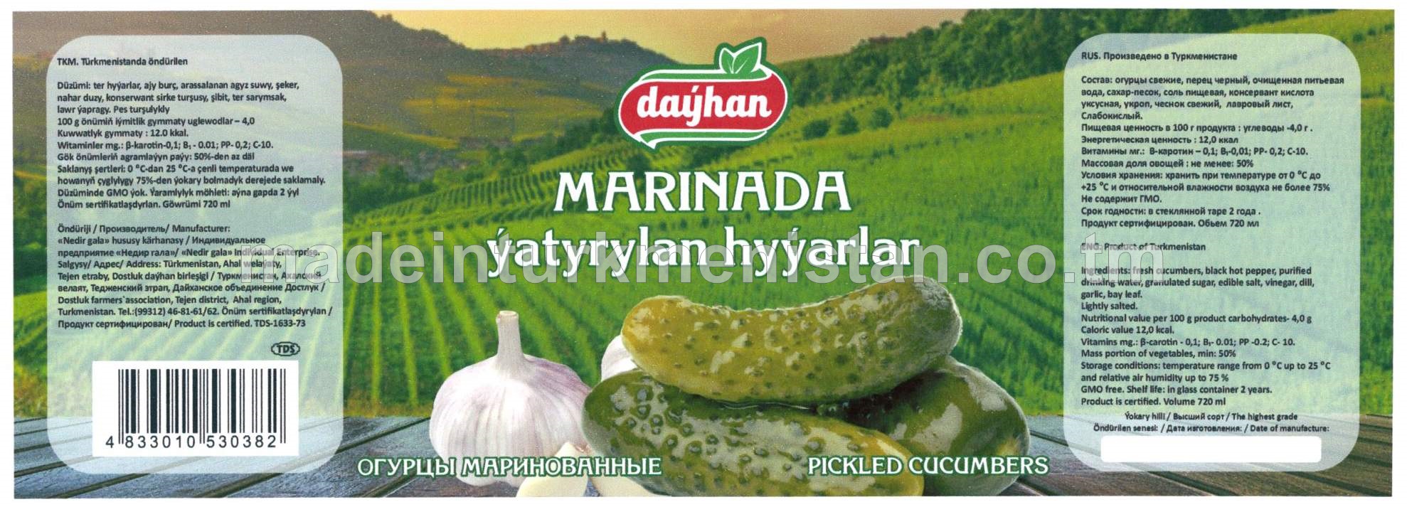 Marinada ýatyrylan hyýarlar