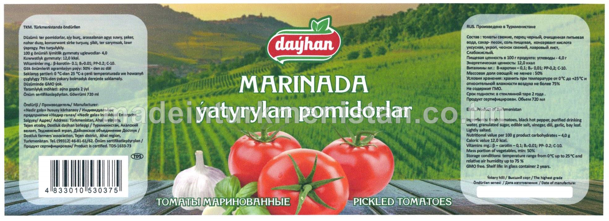 Marinada ýatyrylan pomidorlar
