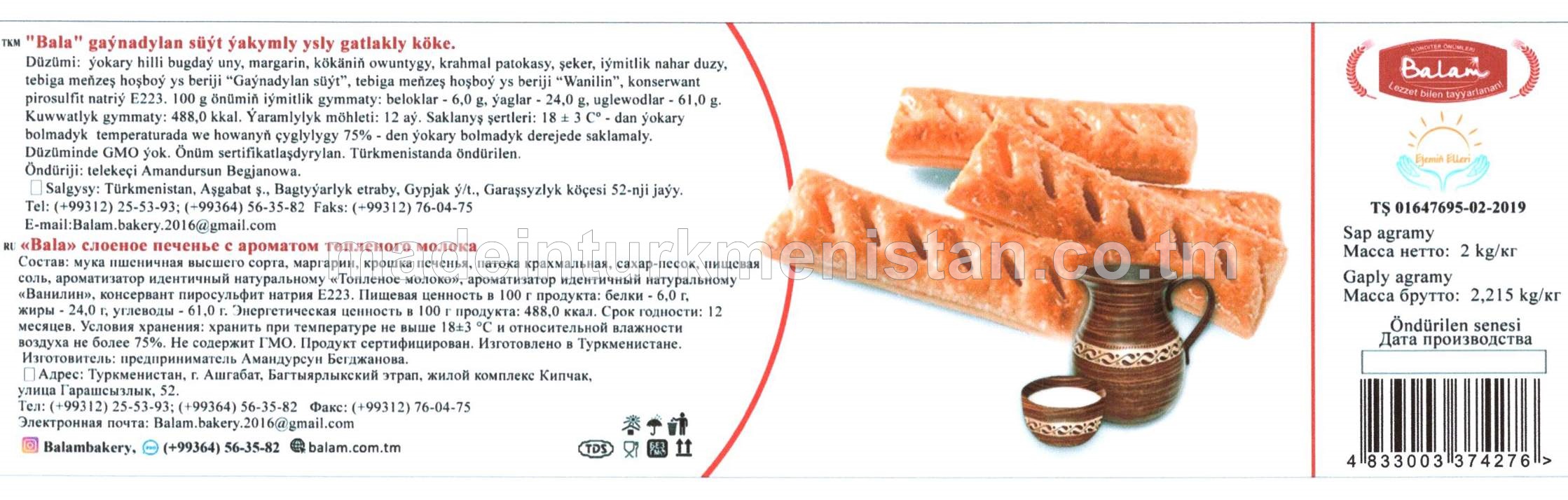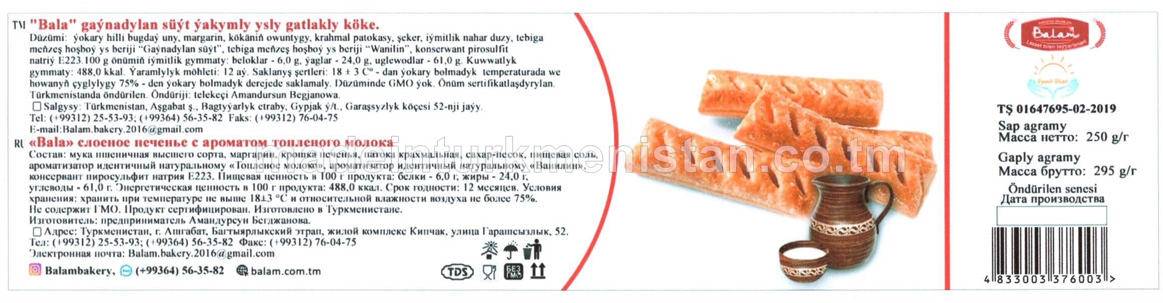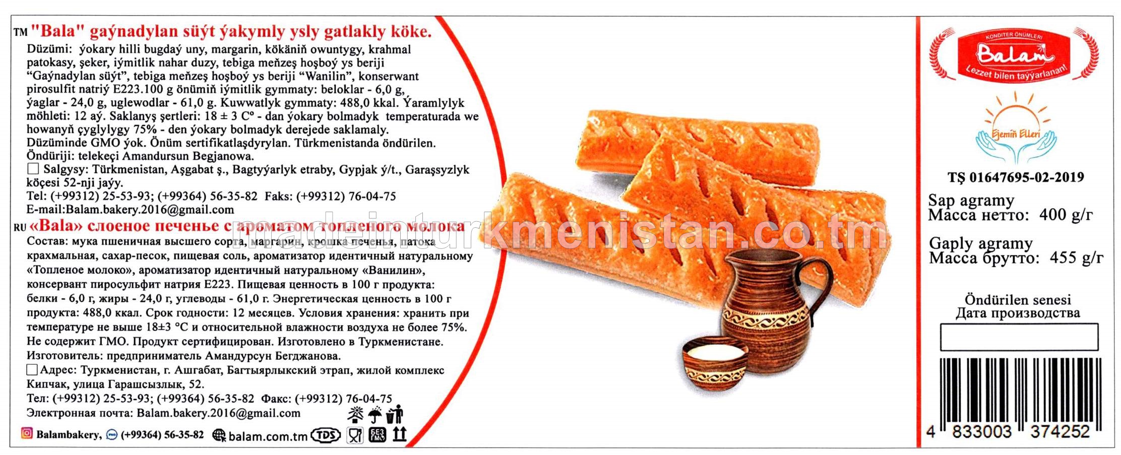 "Bala" gaýnadylan süýt ýakymly ysly gatlakly köke