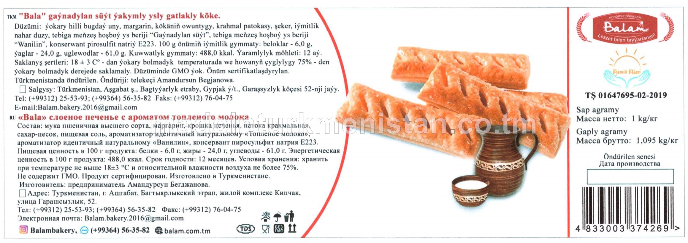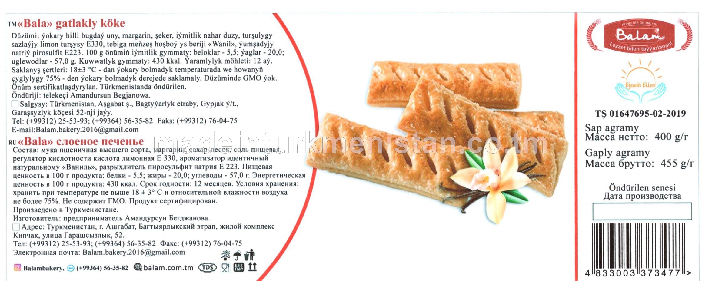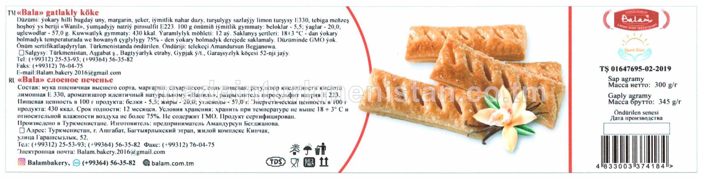 "Bala" gaýnadylan süýt ýakymly ysly gatlakly köke