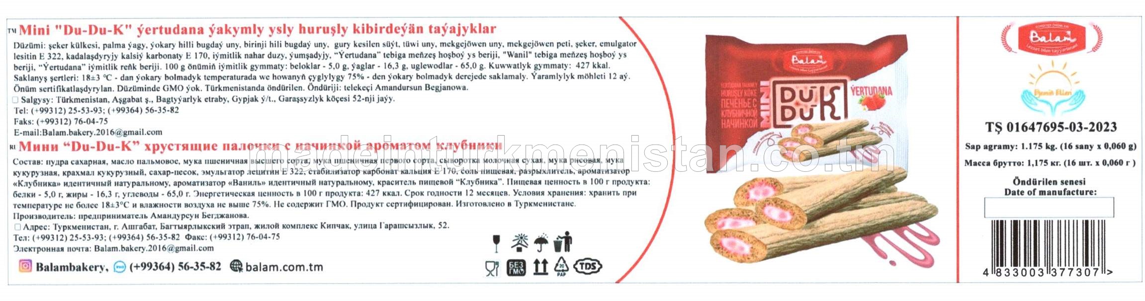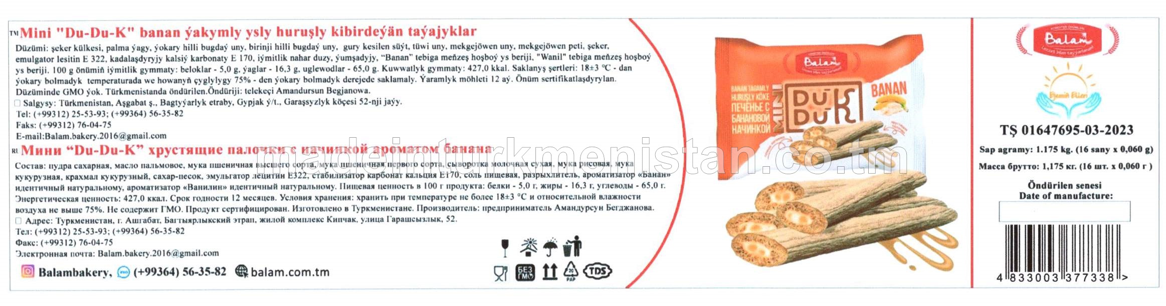 Mini "DU-DU-K" süýt-wanil huruşly kibirdeýän taýajyklar (16 sany x 0,060g)