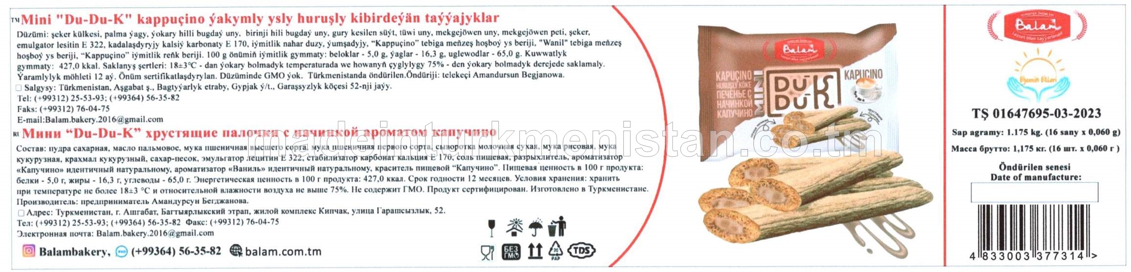 Mini "Du-Du-K" kappuçino ýakymly ysly huruşly kibirdeýan taýýajyklar (16 sany x 0,060g)