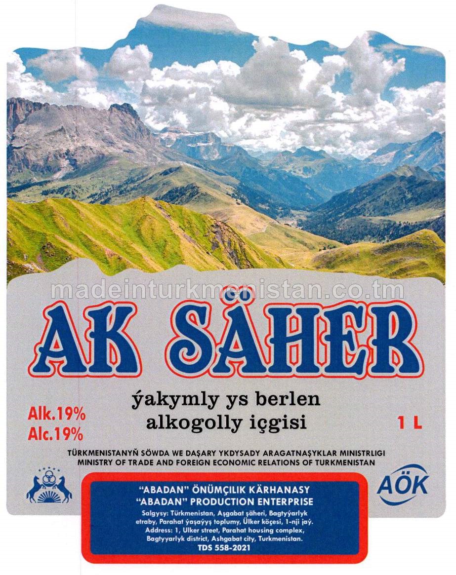 "Ak säher" ýakymly ys berlen alkogolly içgisi, Alk. 19%