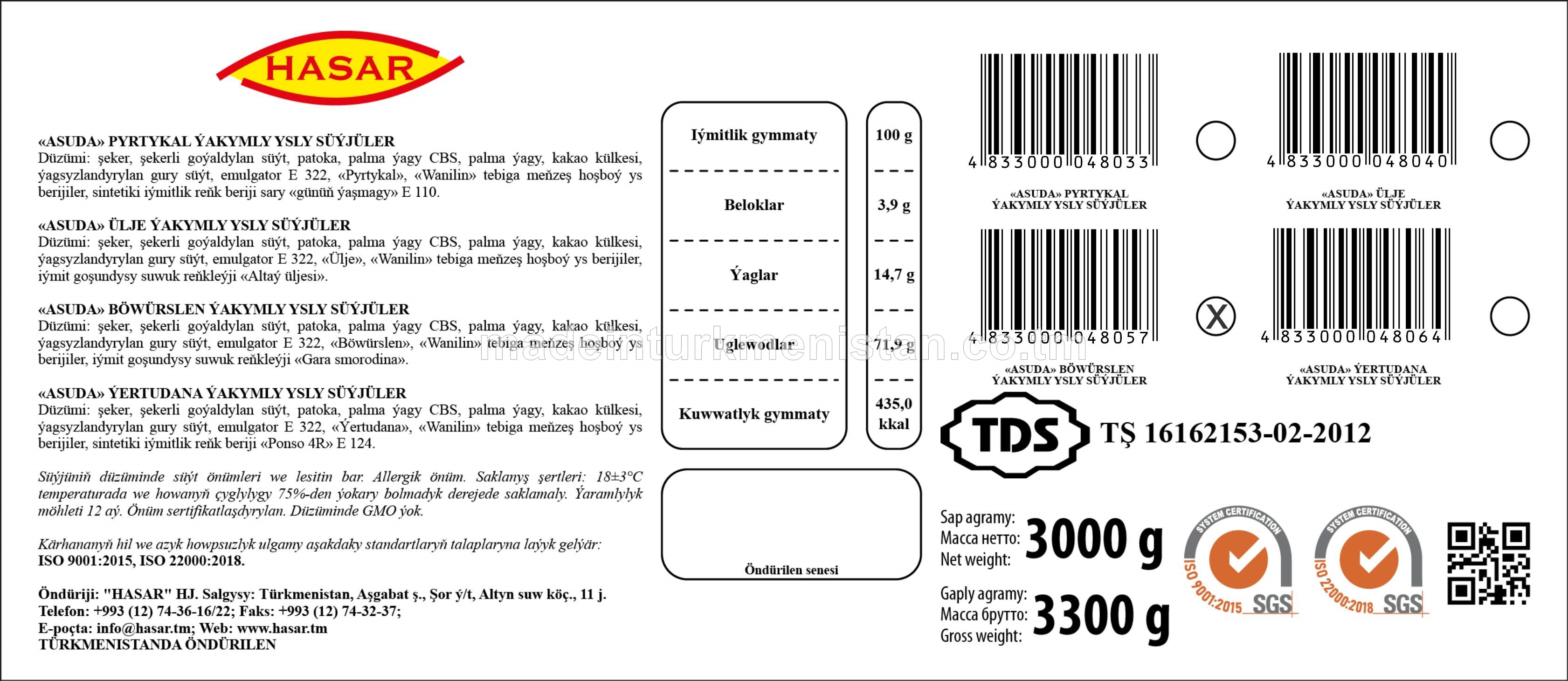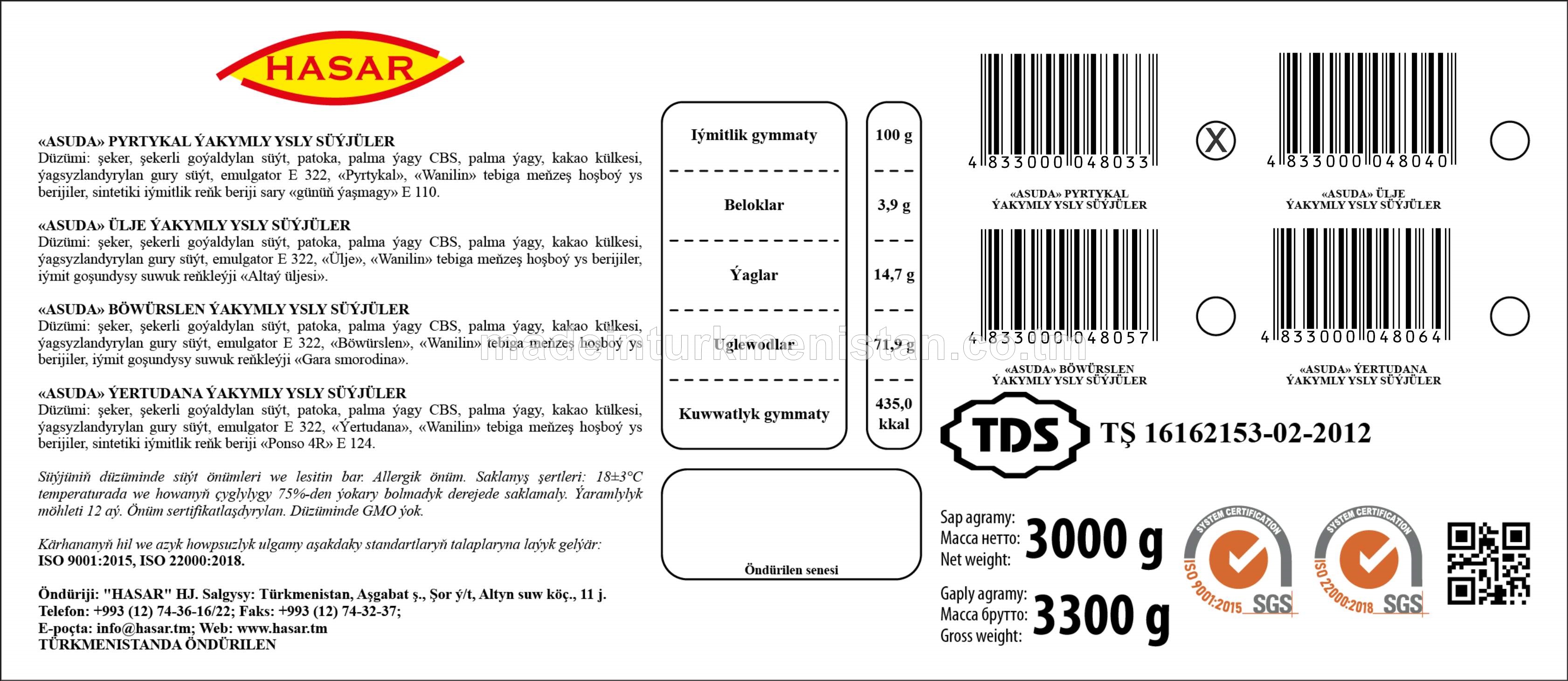 "Asuda" ülje ýakymly ysly süýjüler