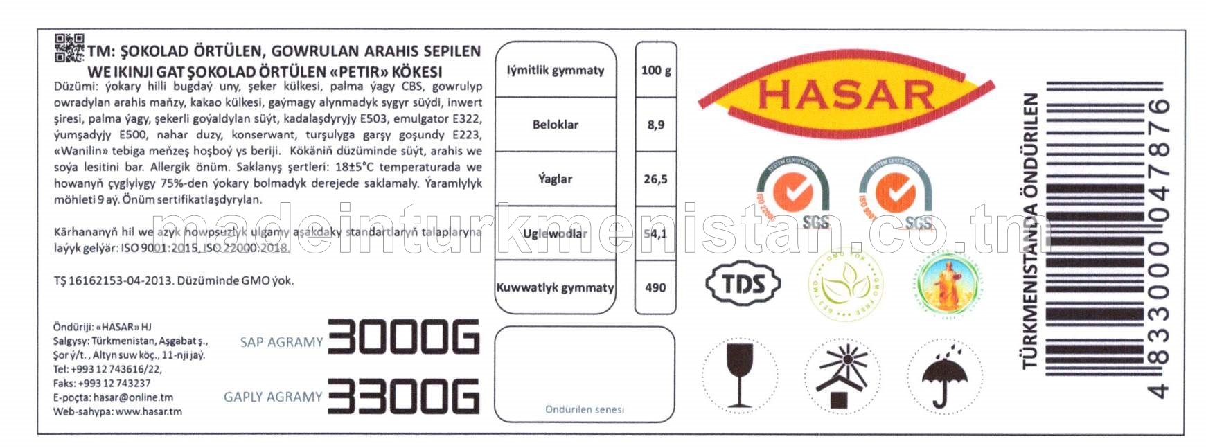 Şokolad örtülen, gowrulan arahis sepilen we ikinji gat şokolad örtülen "Petir" kökesi