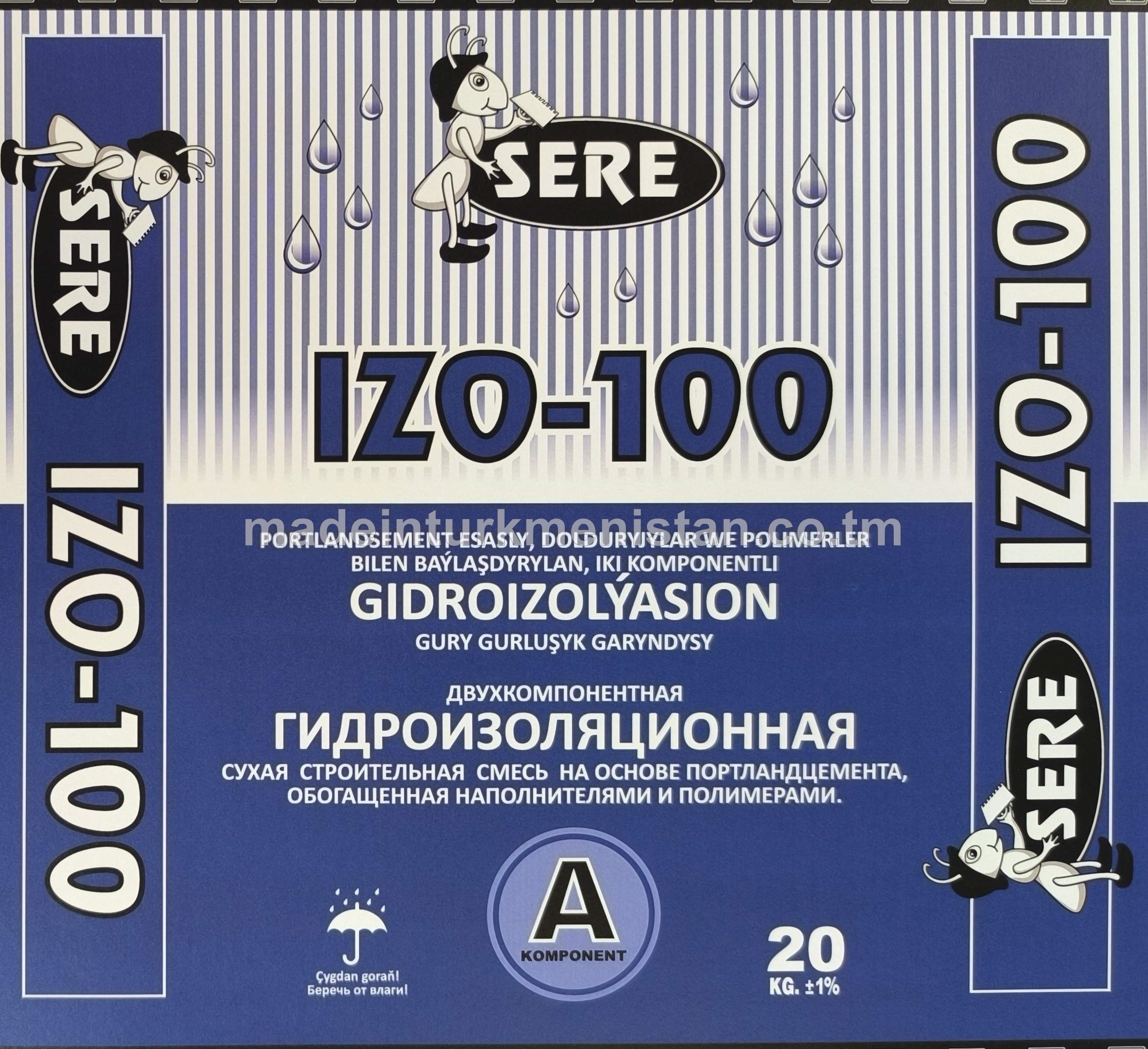 Gidroizolýasiýon gury gurluşyk garyndysy IZO-100, görnüşi külke, reňki çal