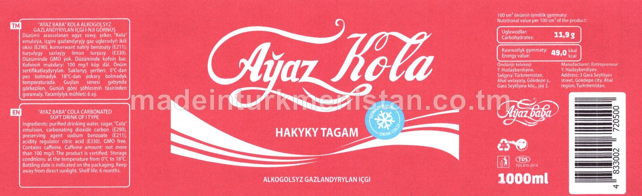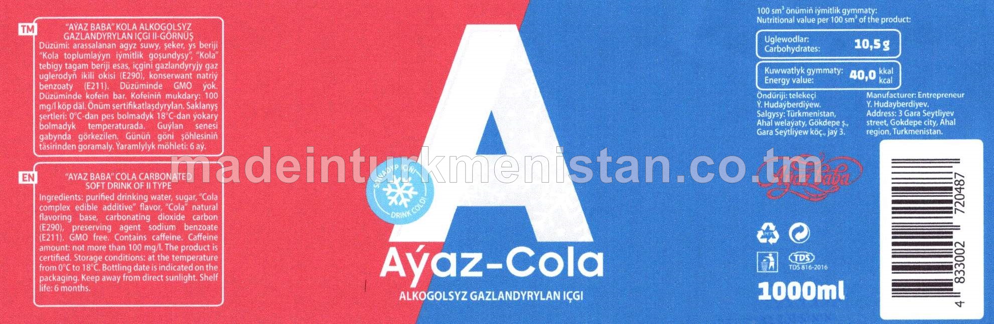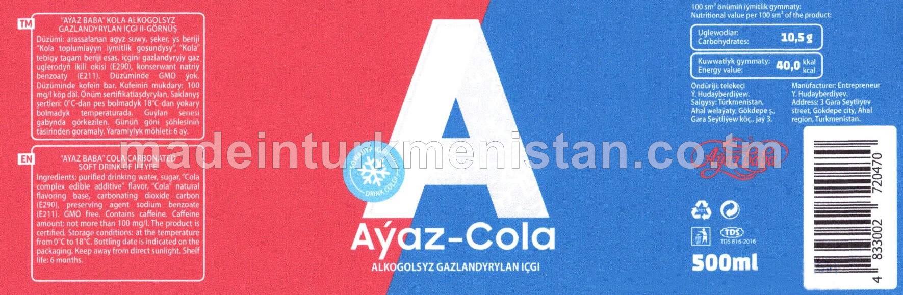 "Ayaz-Cola" kola alkogolsyz gazlandyrylan içgi