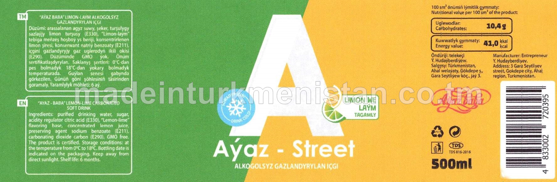 "Aýaz- street" limon-laým alkogolsyz gazlandyrylan içgi