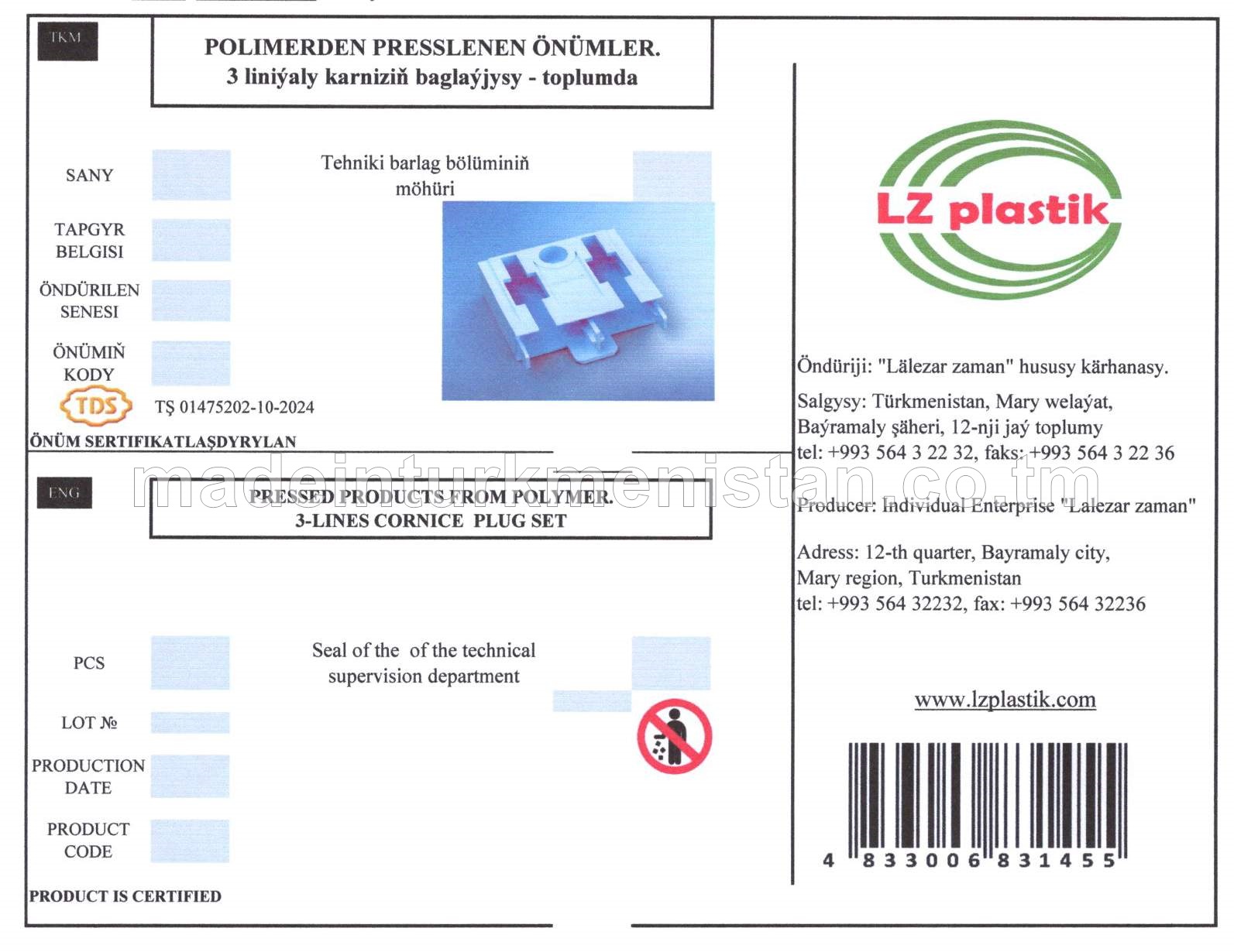 Polimerden presslenen önümler. 3 liniýaly karniziň baglaýjysy toplumda