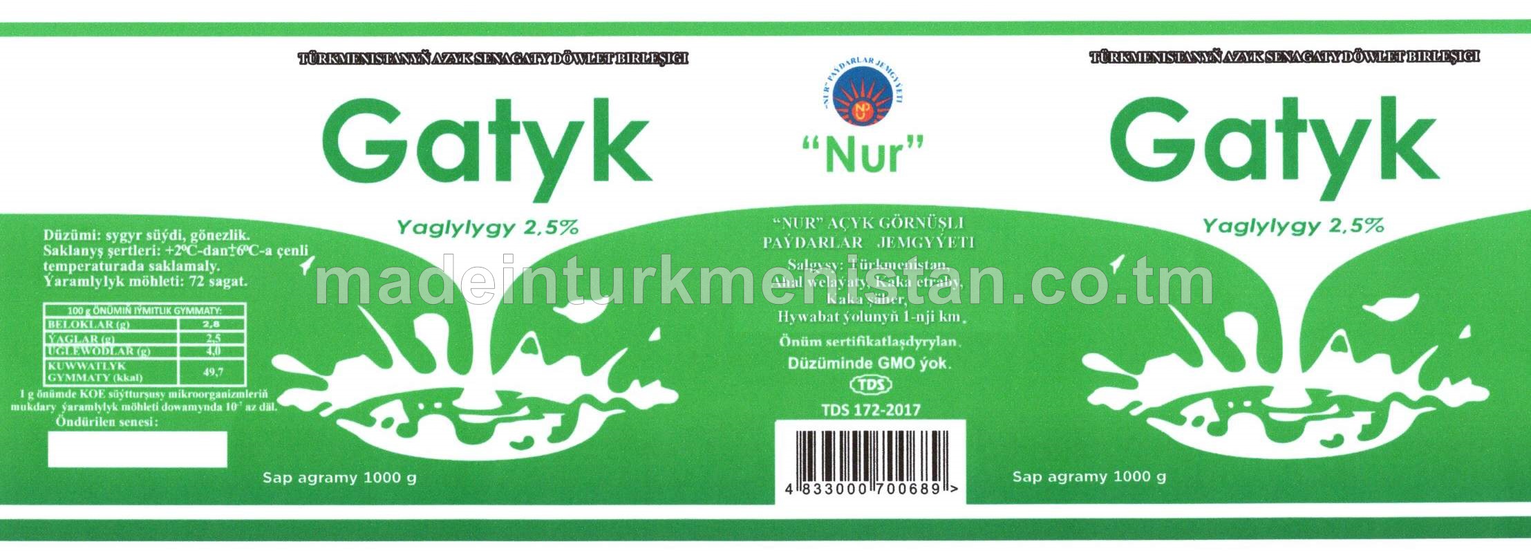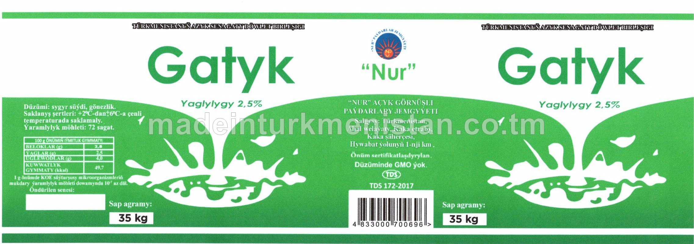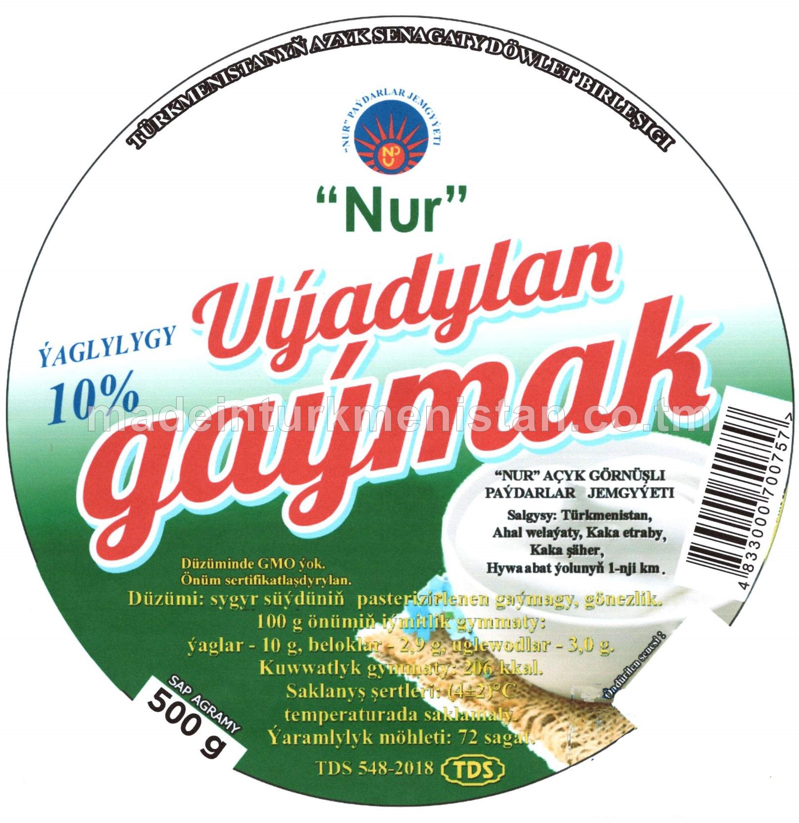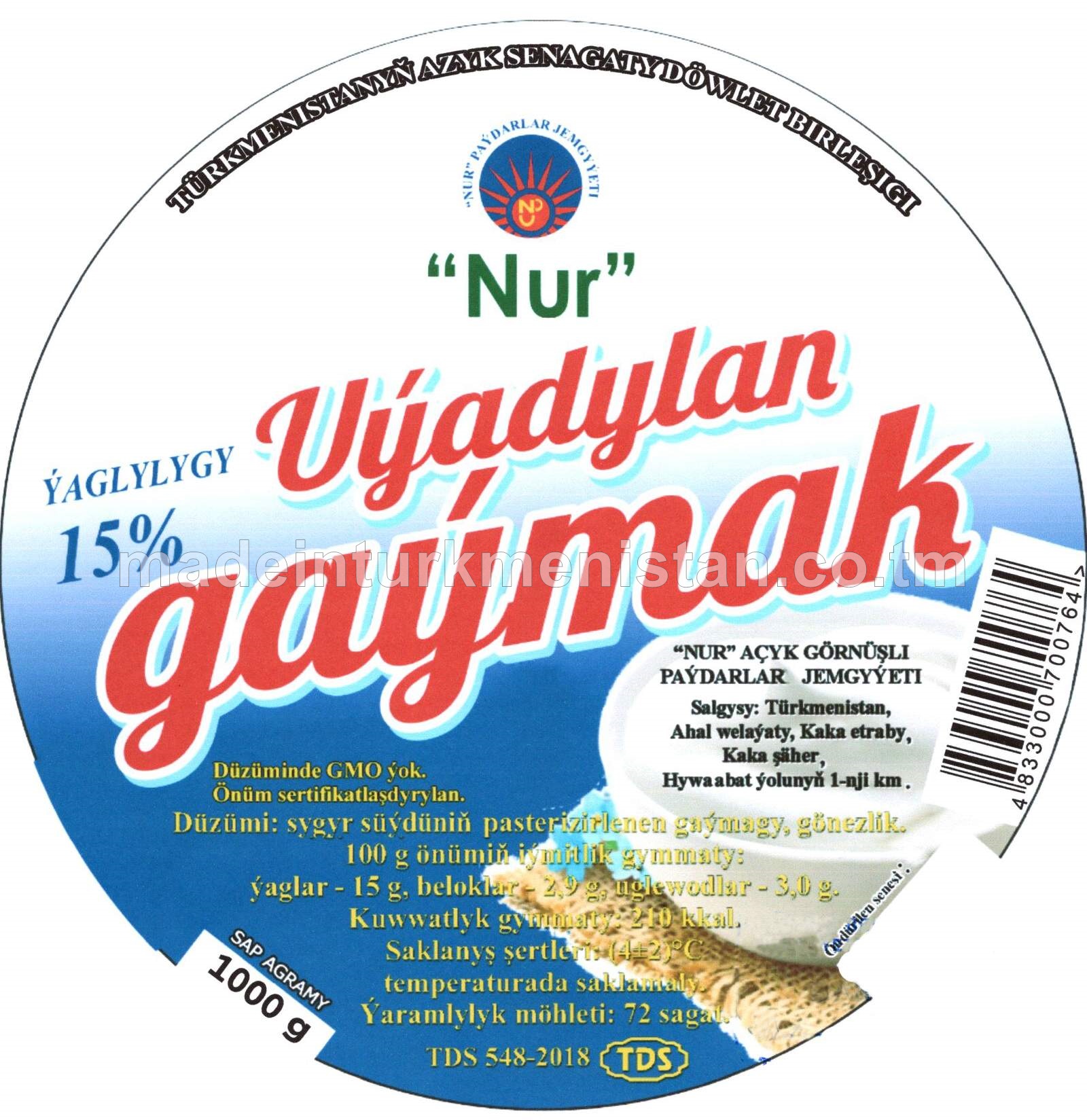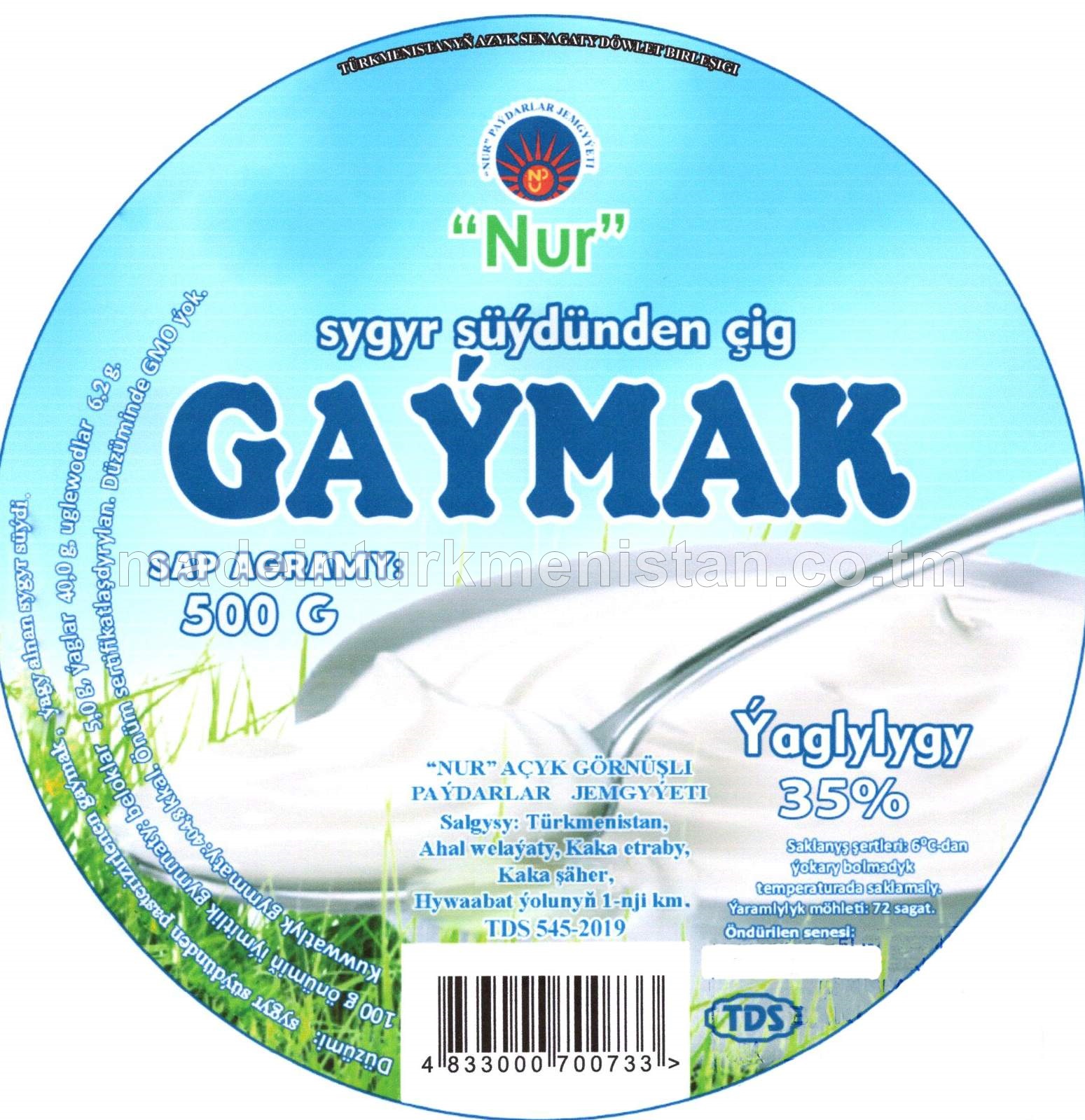 Sygyr süýdünden çig gaýmak. Ýaglylygy 35%