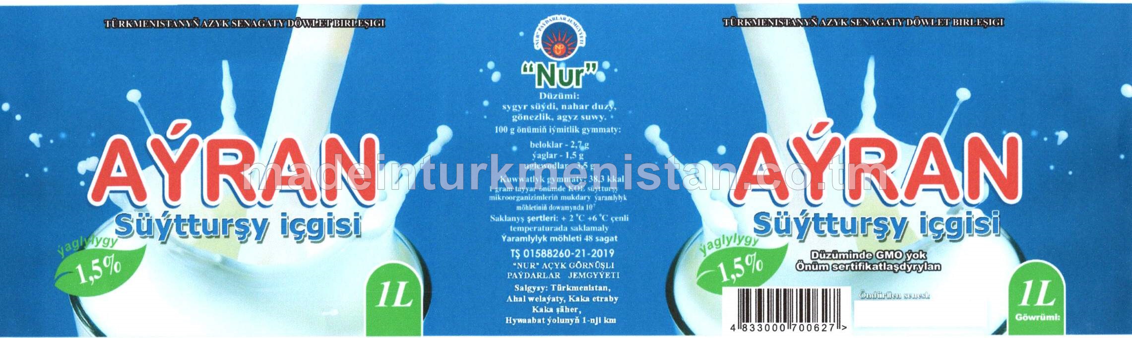 Aýran süýtturşy içgisi. Ýaglylygy 1,5%
