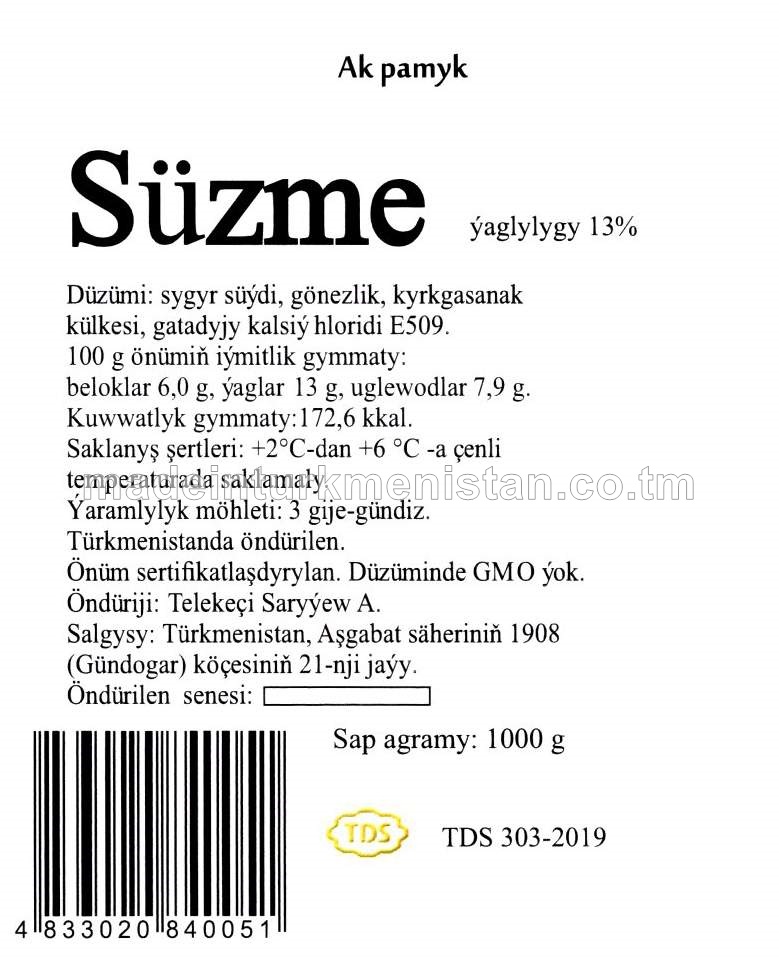 Paýtagt duzly peýniri, ýaglylygy 40% (çekimli)