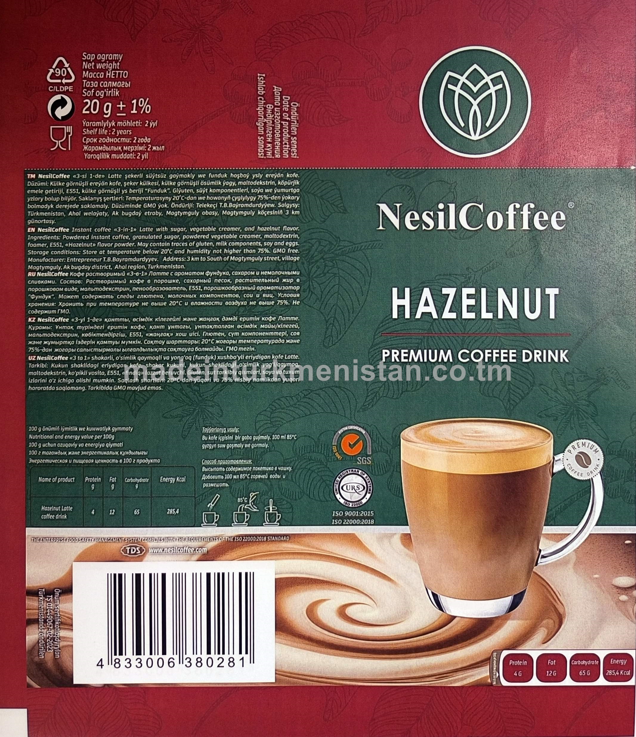 NesilCoffee "3-si 1-de" Latte şekerli süýtsüz gaýmakly we funduk hoşboý ysly ereýän kofe