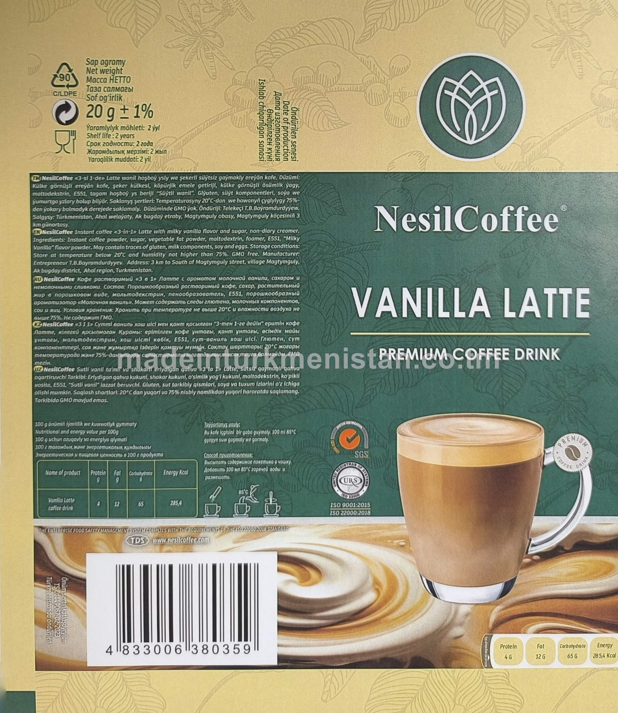 NesilCoffee "3-si 1-de" Latte wanil hoşboý ysly we şekerli süýtsüz gaýmakly ereýän kofe