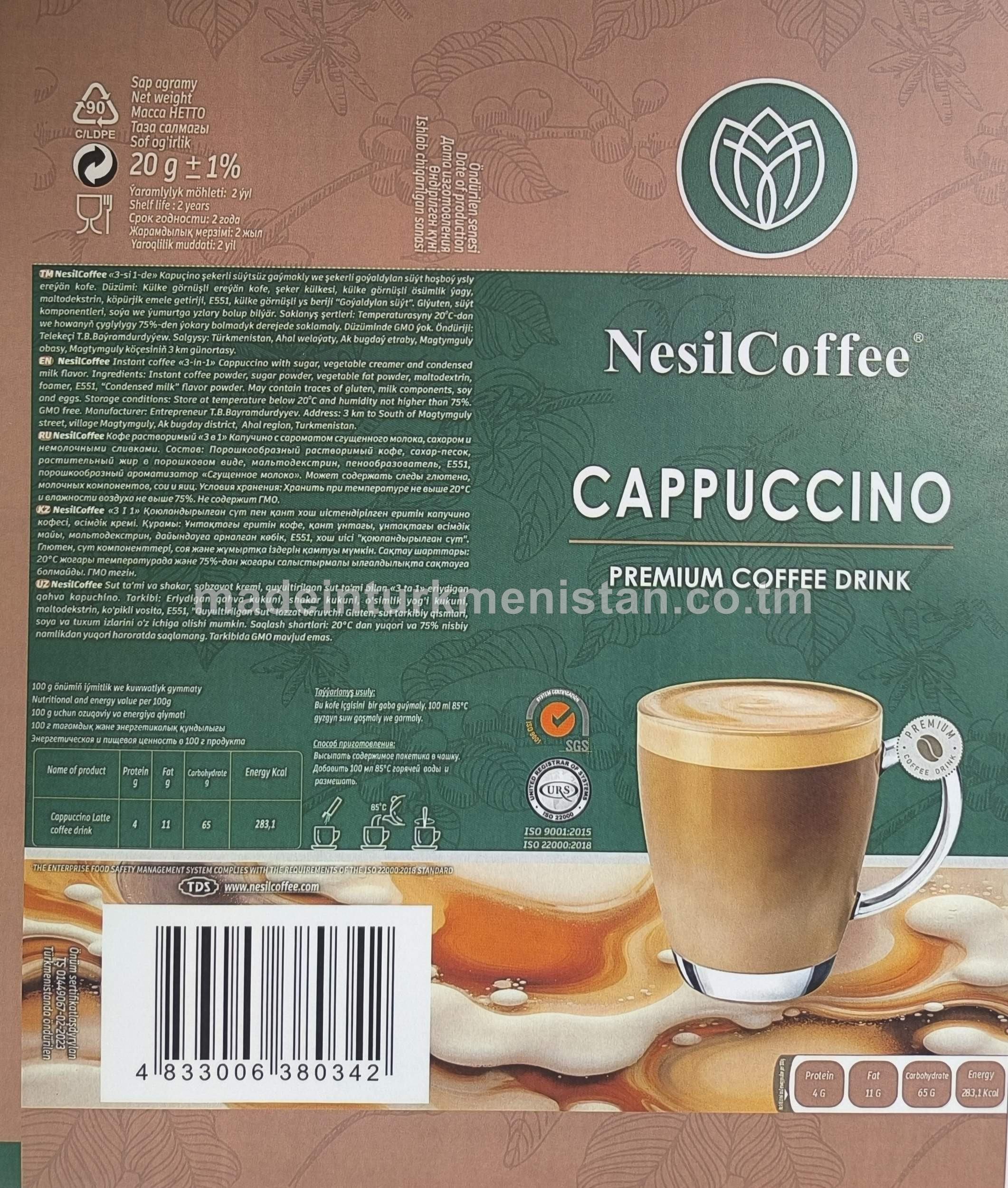 NesilCoffee "3-si 1-de" Kapuçino şekerli süýtsüz gaýmakly we şekerli goýaldylan süýt hoşboý ysly ereýän kofe