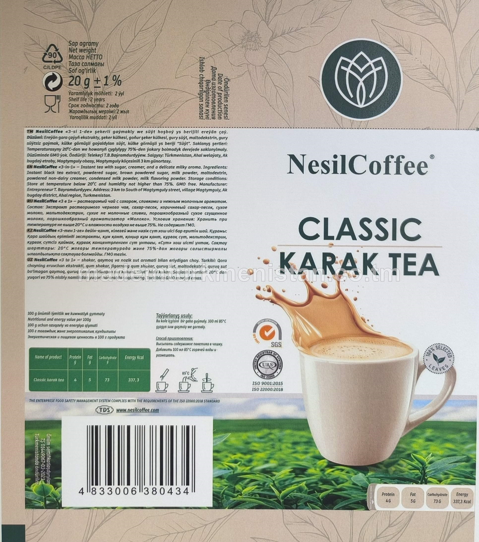 NesilCoffee "3-si 1-de" şekerli gaýmakly we süýt hoşboý ys berijili ereýän çaý (20 sany * 20 g)