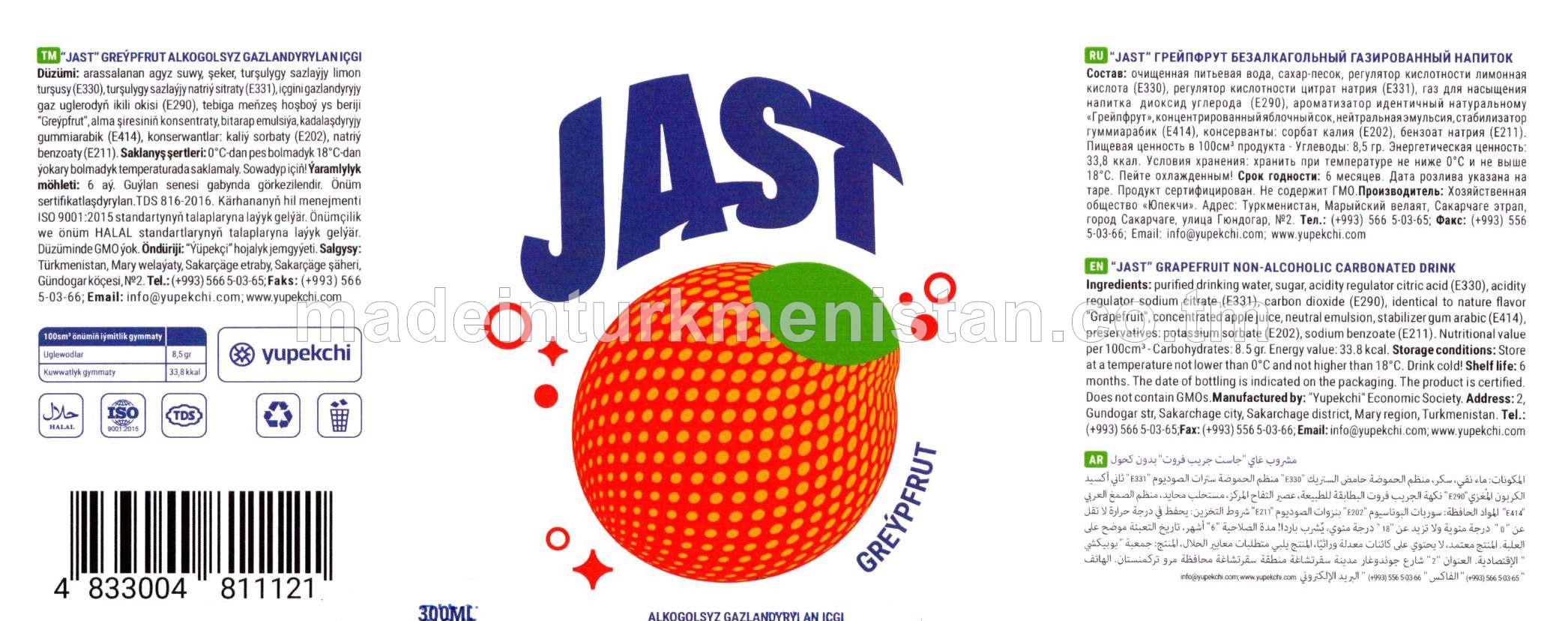 "JAST" greýpfrut alkogolsyz gazlandyrylan içgi