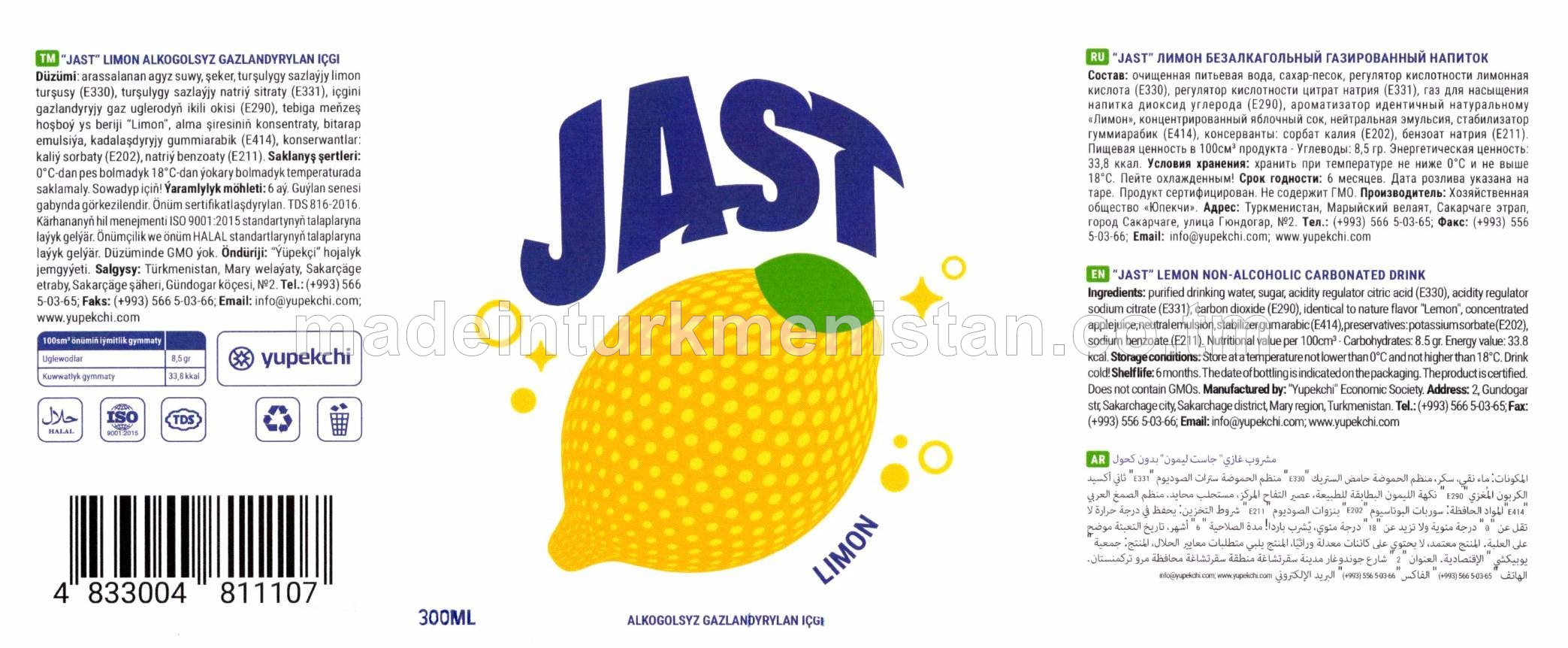 "JAST" limon alkogolsyz gazlandyrylan içgi
