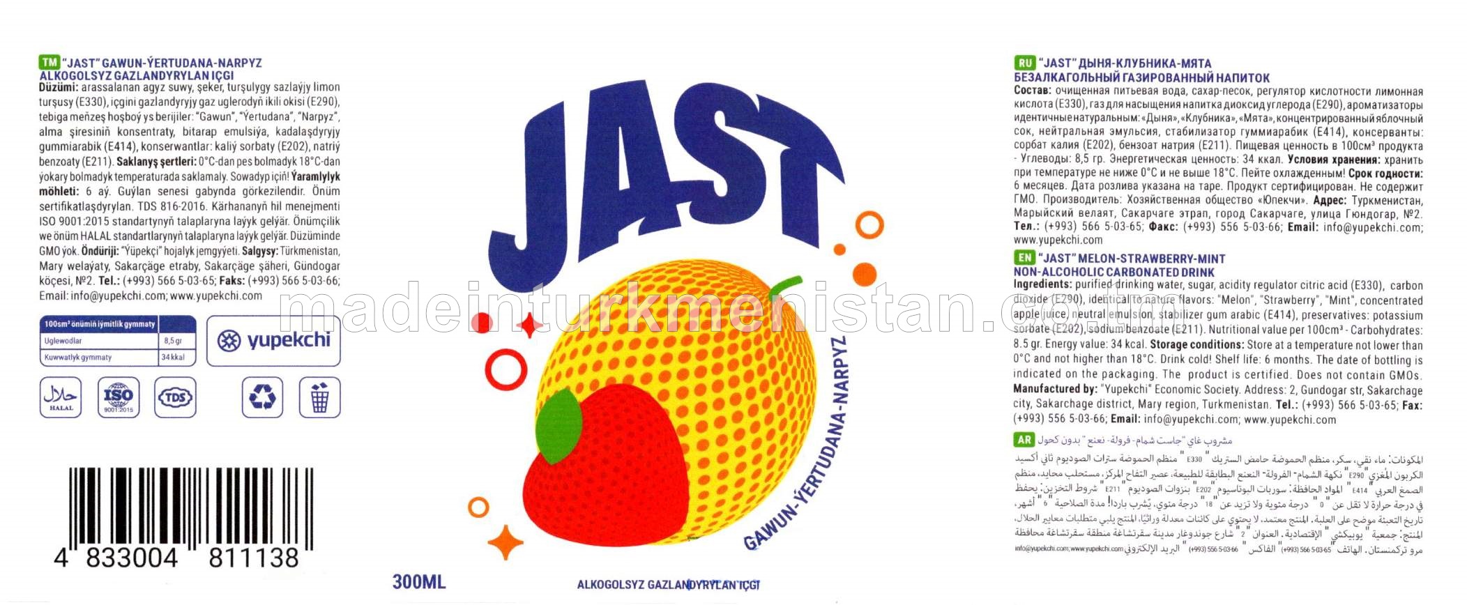"JAST" gawun-ýertudana-narpyz alkogolsyz gazlandyrylan içgi