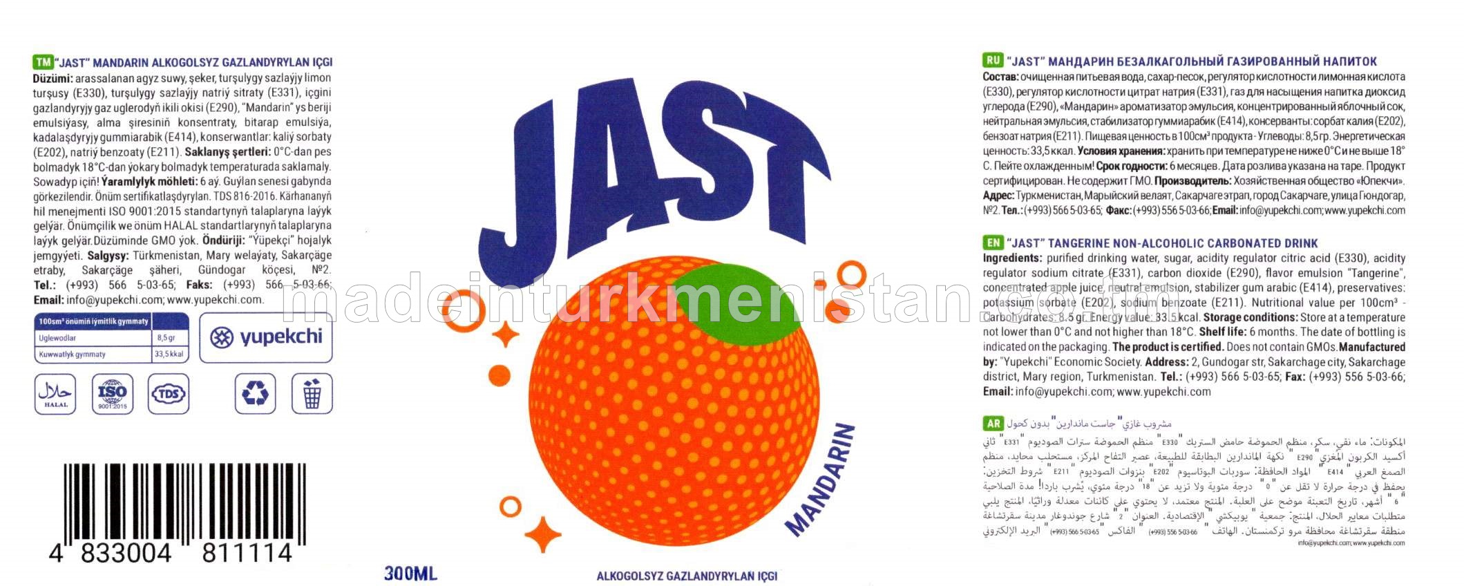 "JAST" mandarin alkogolsyz gazlandyrylan içgi