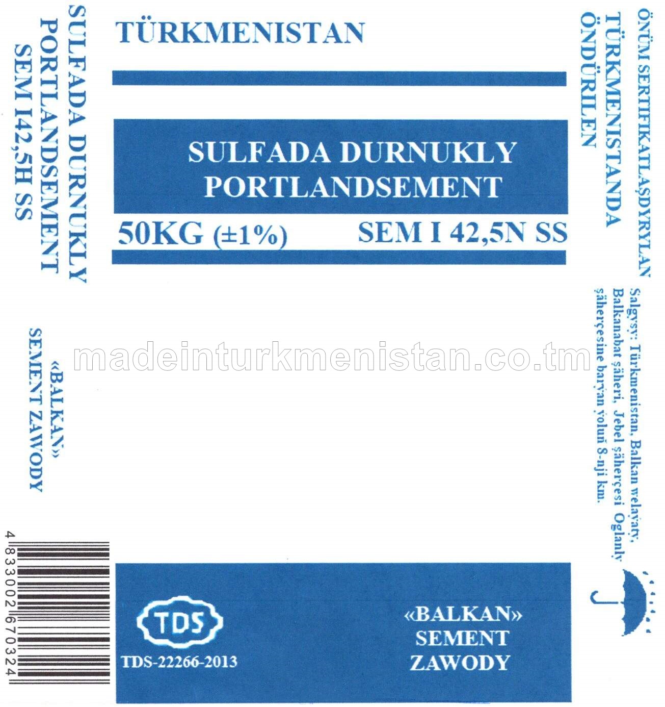 Sulfada durnukly portlandsement SEM I 42,5N SS (ЦЕМ I 42,5Н СС)