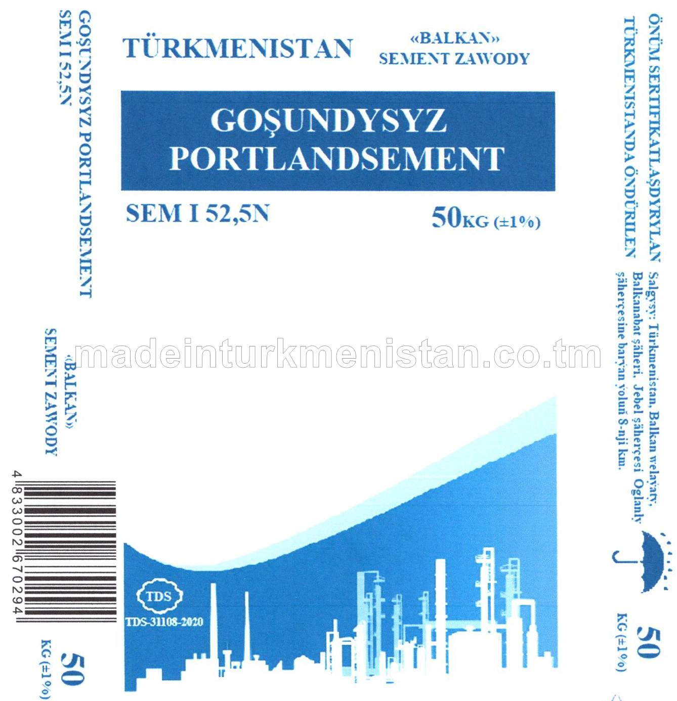Goşundysyz Portlandsement SEM I 42,5N (ЦЕМ I 42,5Н)