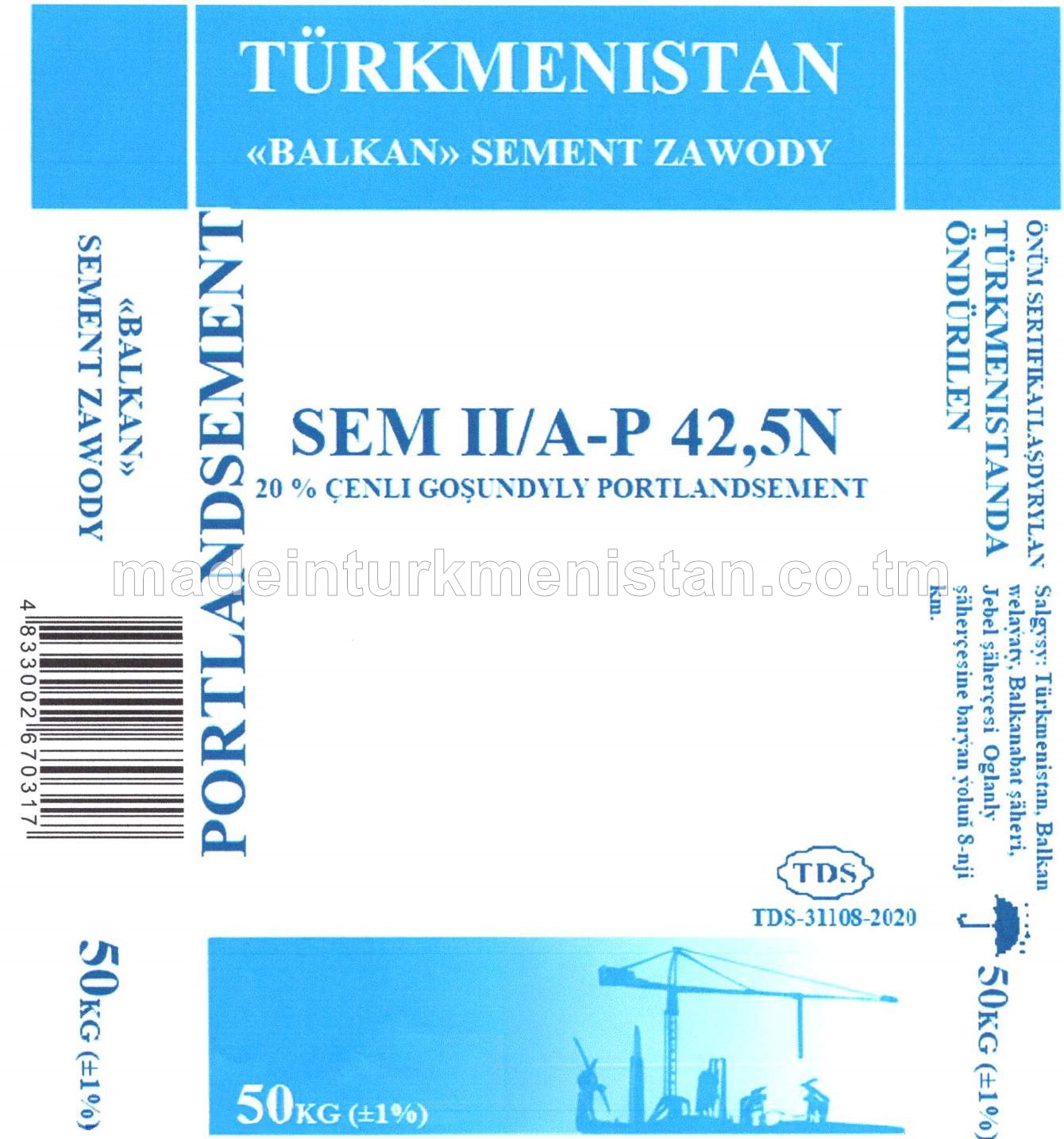 20% çenli Goşundyly Portlandsement SEM II/A-P 42,5N (ЦЕМ II/А-П 42,5Н)