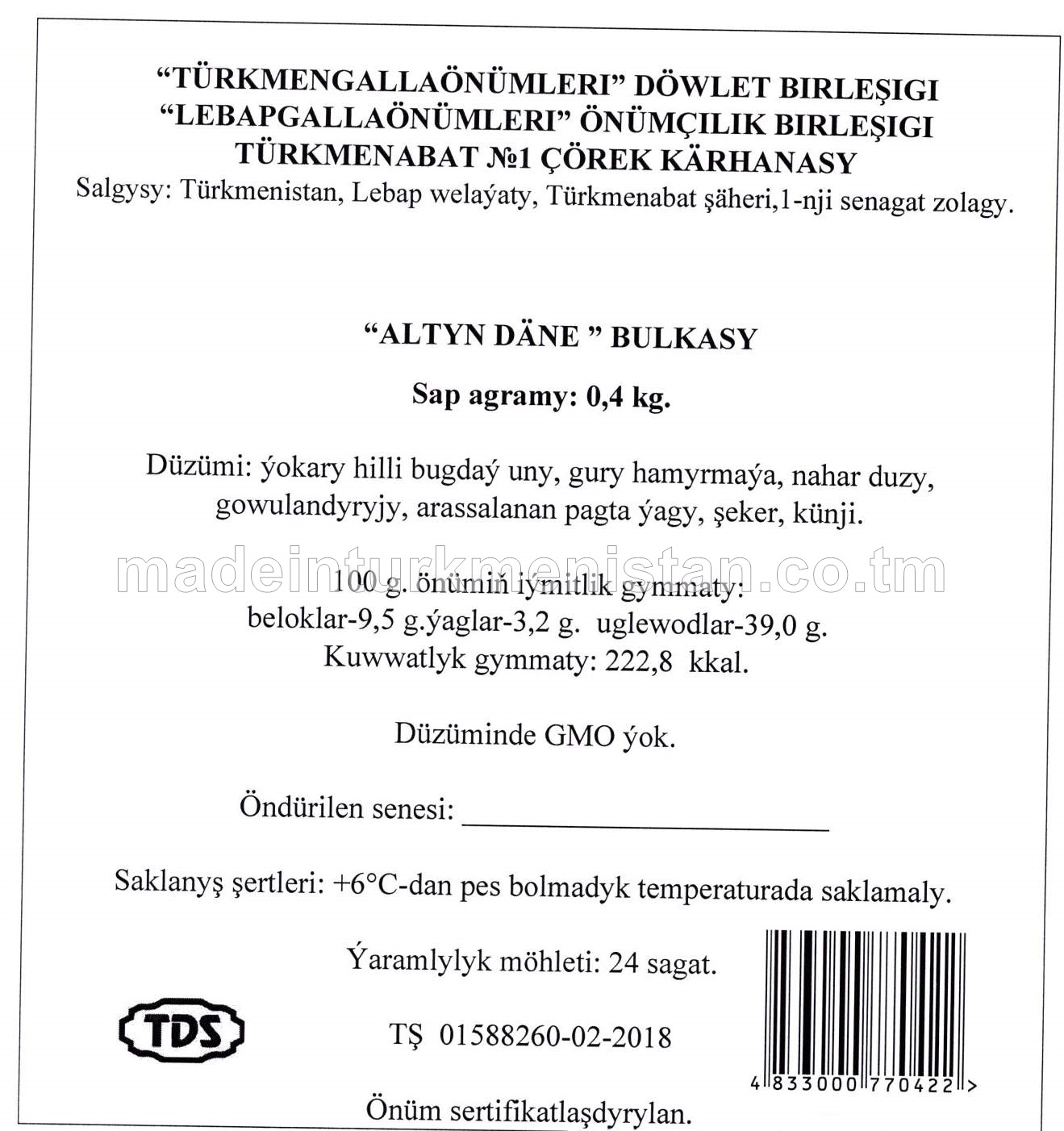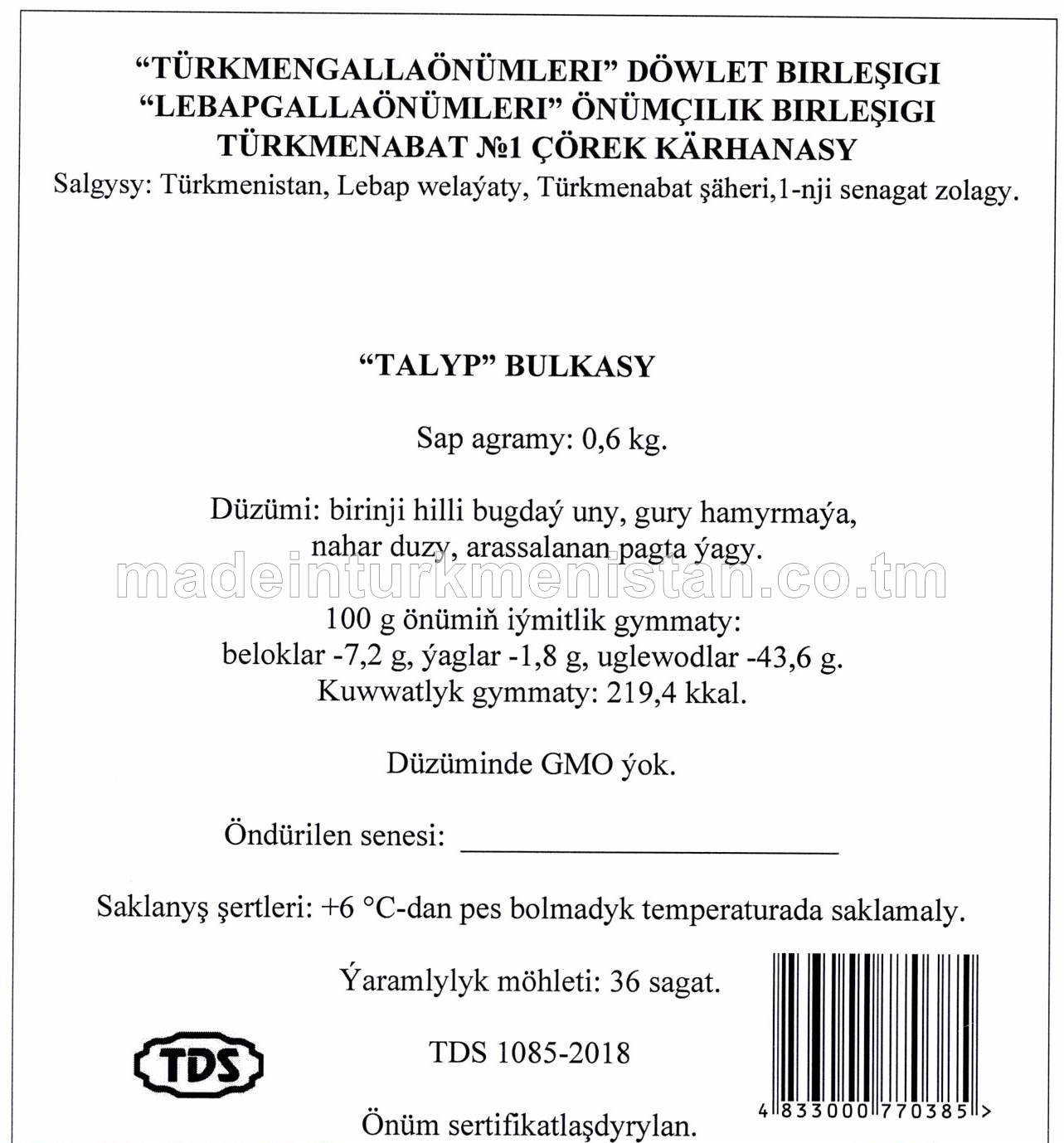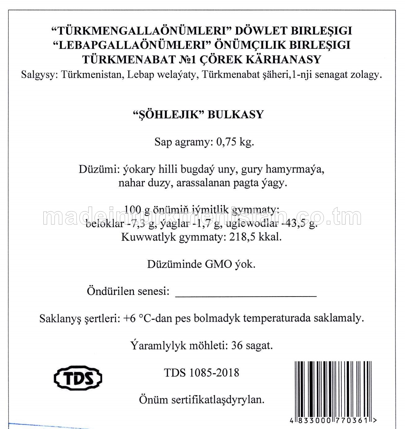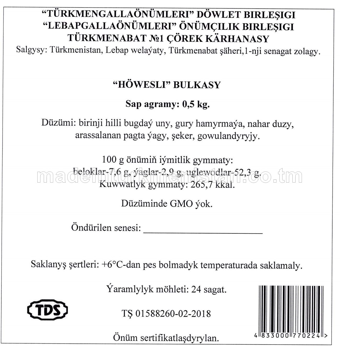 "Lebap" ýagly gatlanan bulkasy, ýokary hilli