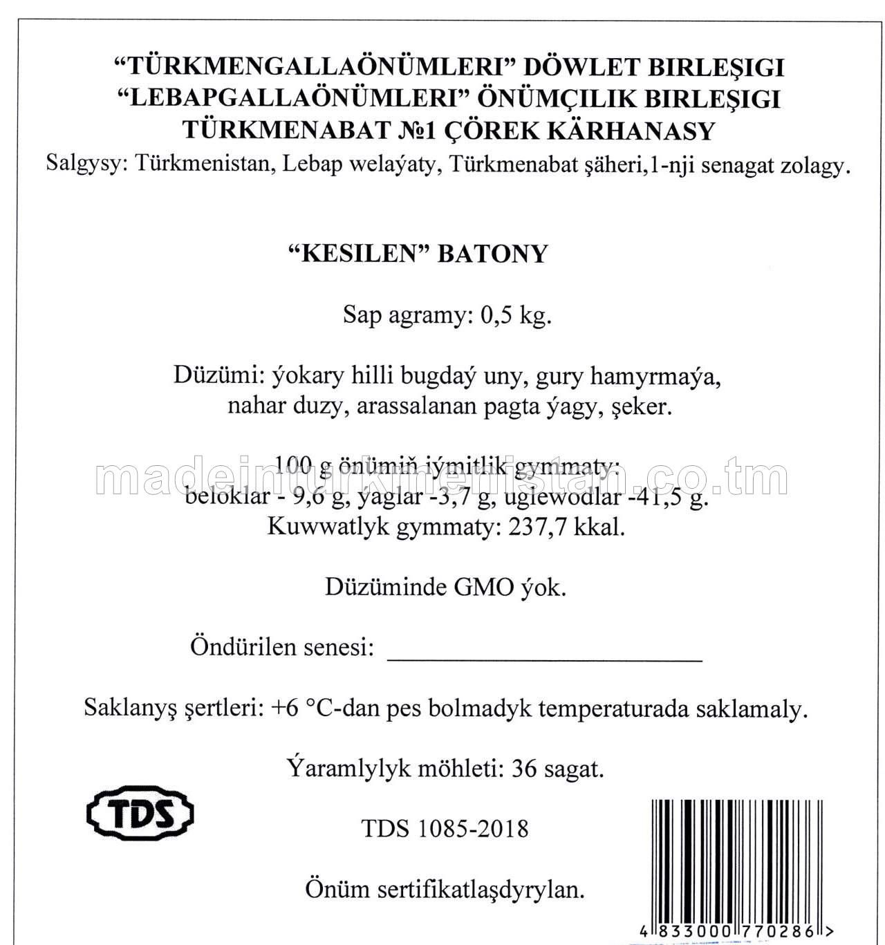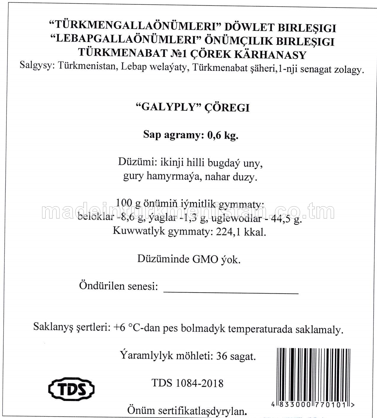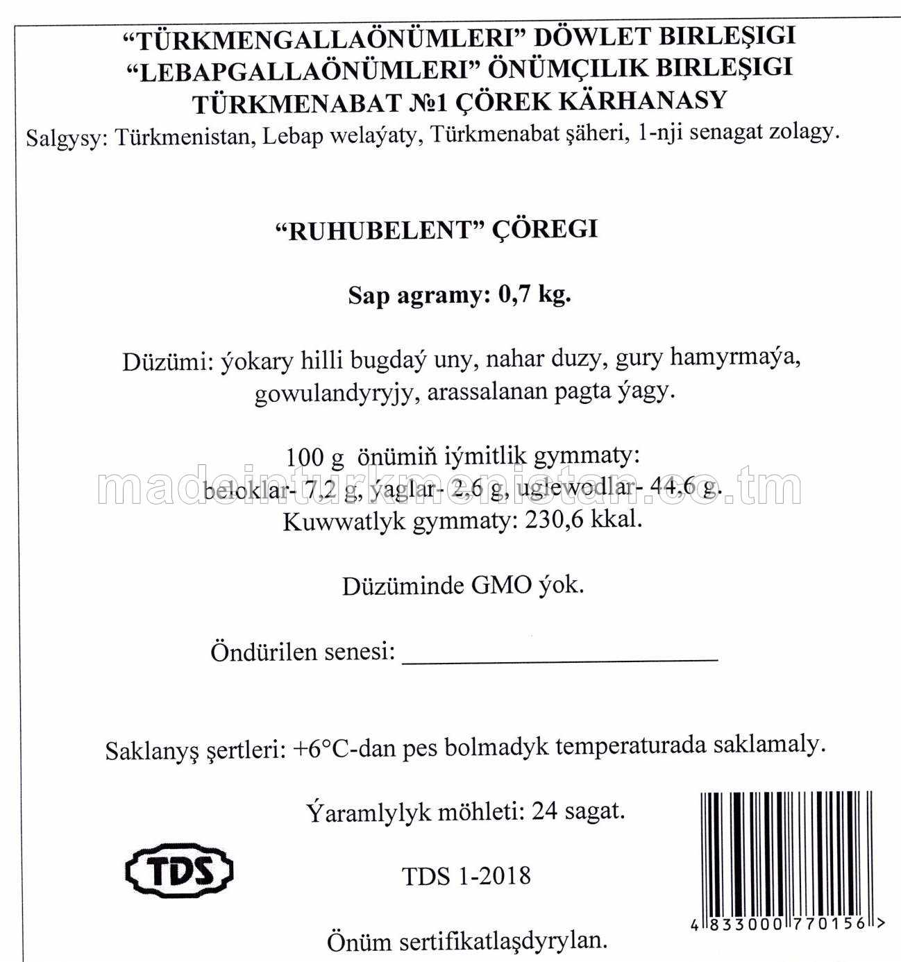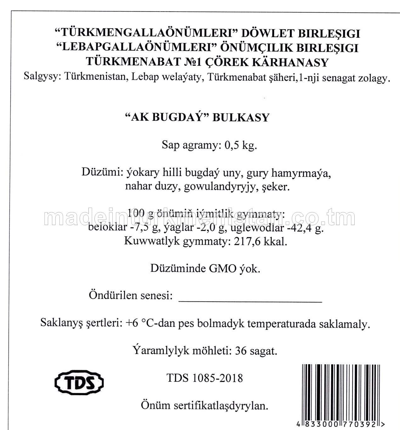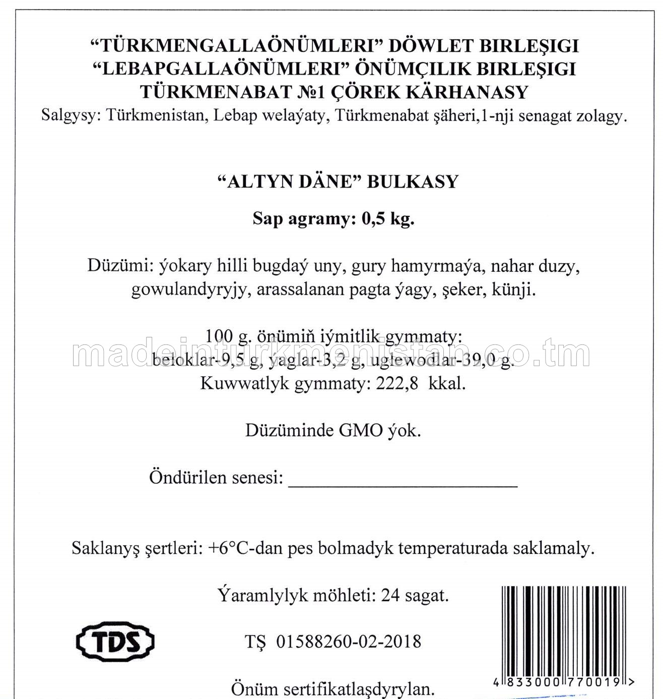 "Lebap" ýagly gatlanan bulkasy, ýokary hilli
