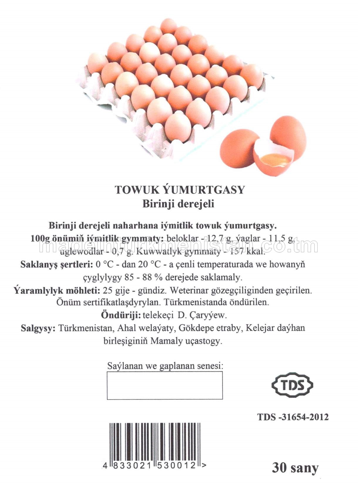 Birinji derejeli naharhana iýmitlik towuk ýumurtgasy